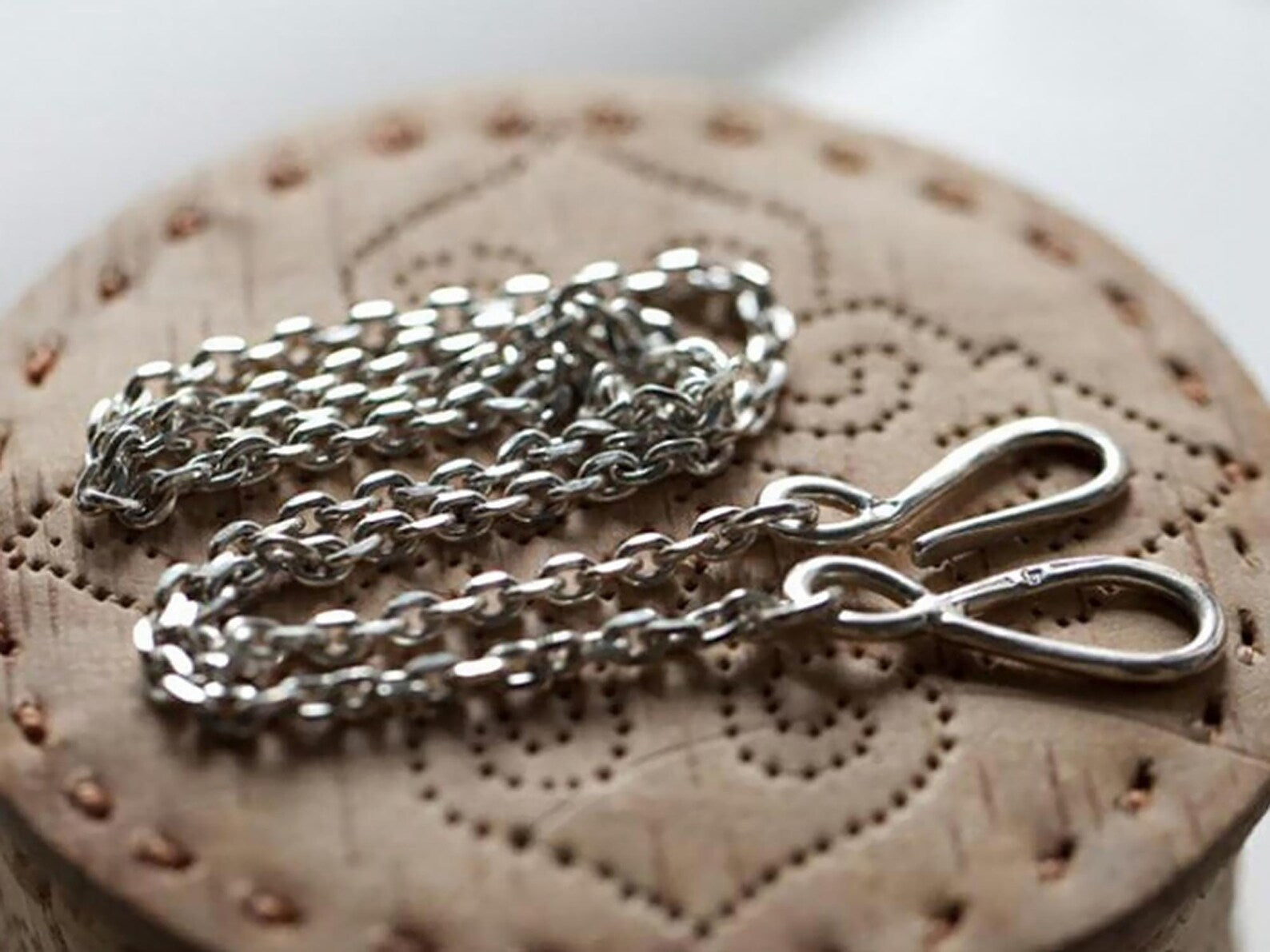 Sterling Silver Hook Clasp Chain Necklace for Men. Rugged yet refined, this handcrafted sterling silver chain is designed for men who appreciate bold simplicity and lasting quality. Made from oxidized 925 silver, it features a minimalist cable link and a distinctive oversized clasp—one end shaped as a fish hook, the other as an infinity loop.