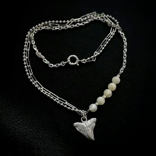 Handcrafted Silver Shark Tooth Seashell Bead Layered Necklace Set