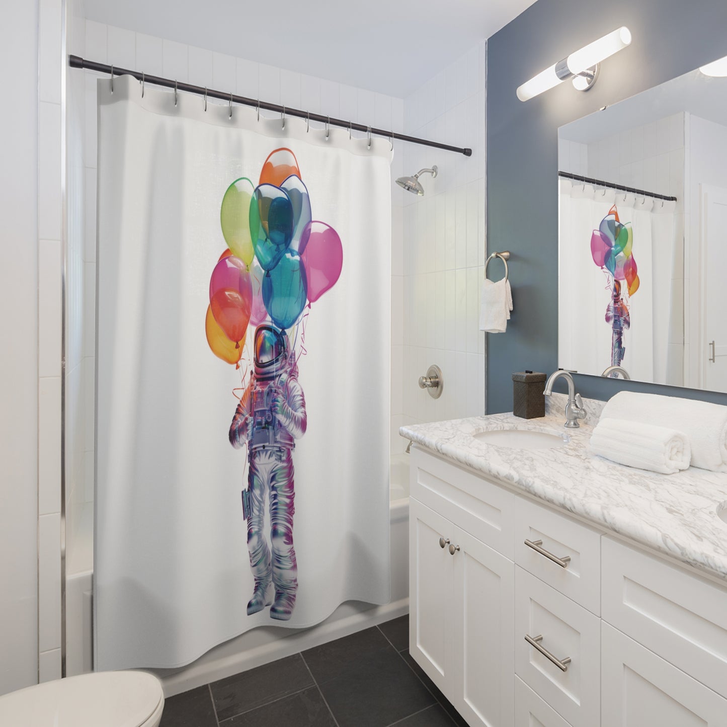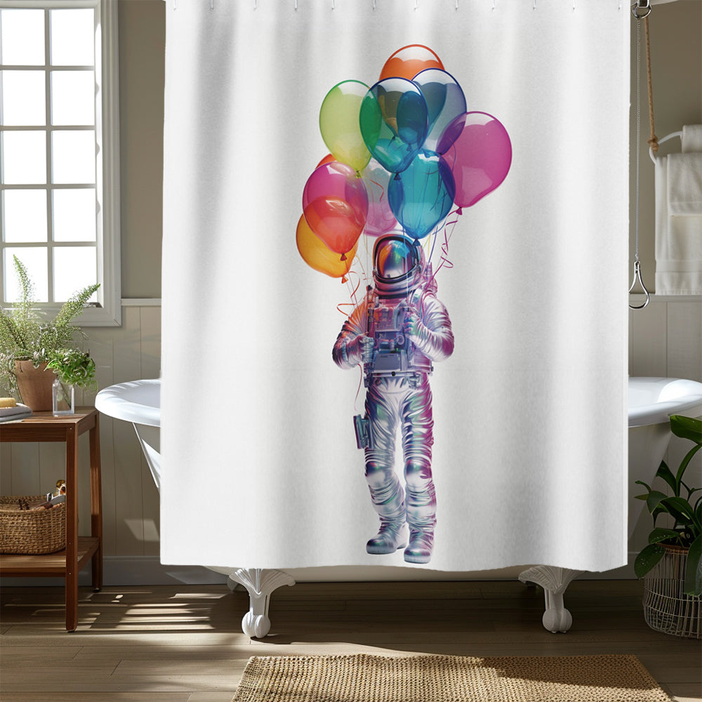 Futuristic Astronaut Balloons Art Print Shower Curtain
