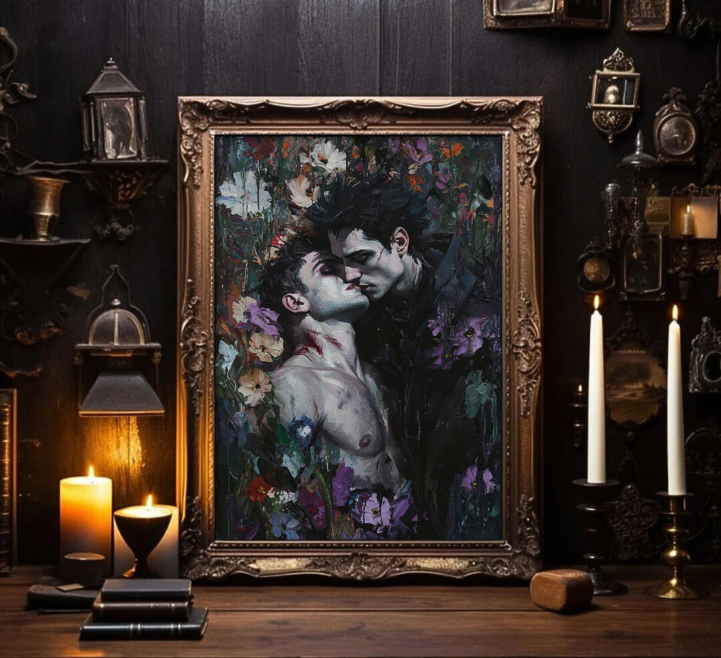 Gothic Gay Art Vampire Lovers Kissing Canvas Print Dark Romantic Decor