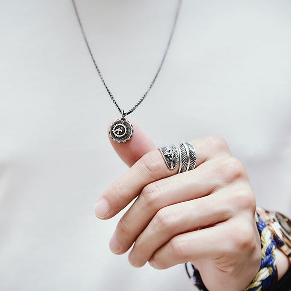 Goro's Style Embossed Thunderbird Disc Stainless Steel Necklace