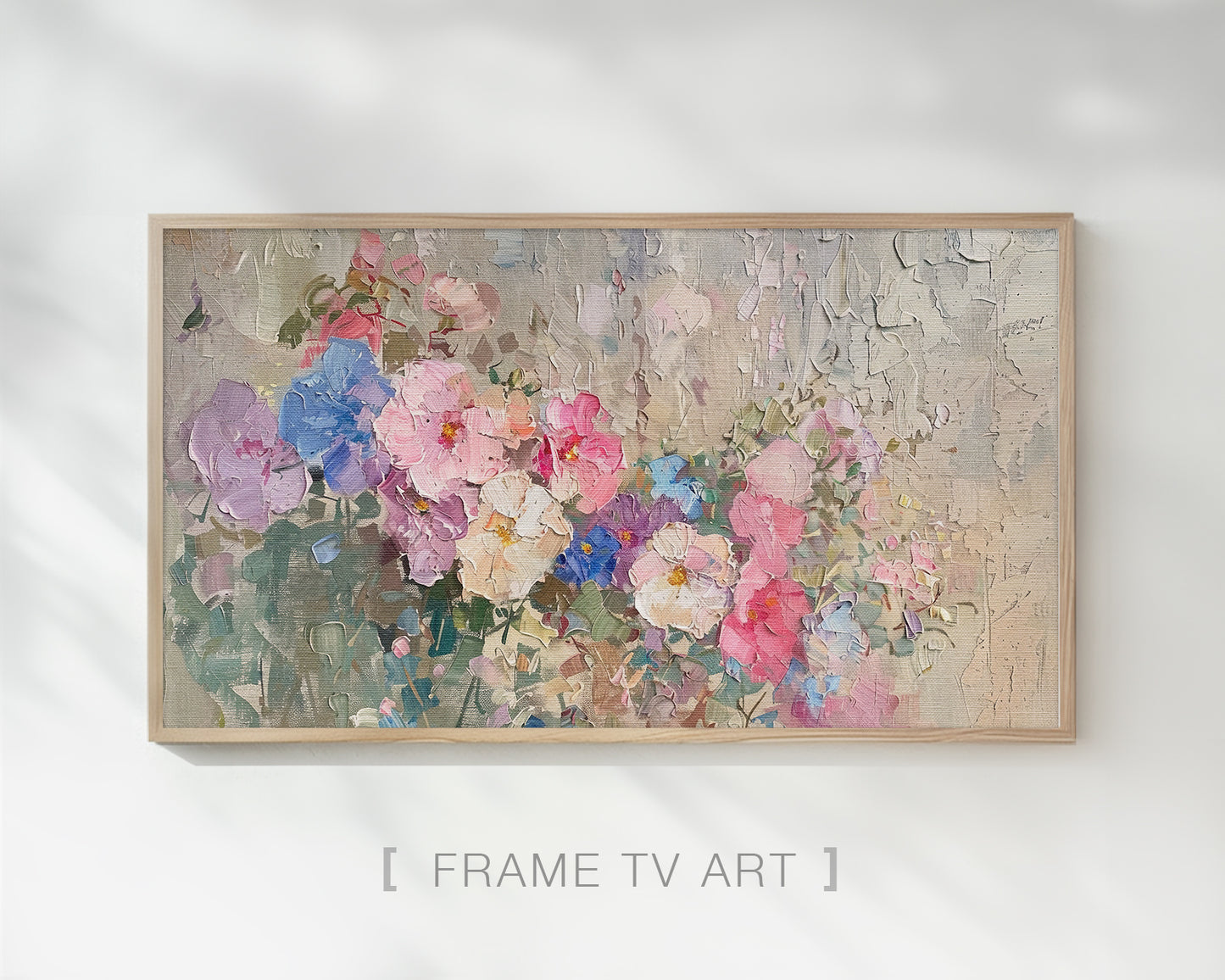 Rustic Flowers Spring Frame TV Art, Vintage Wildflowers Wallpaper