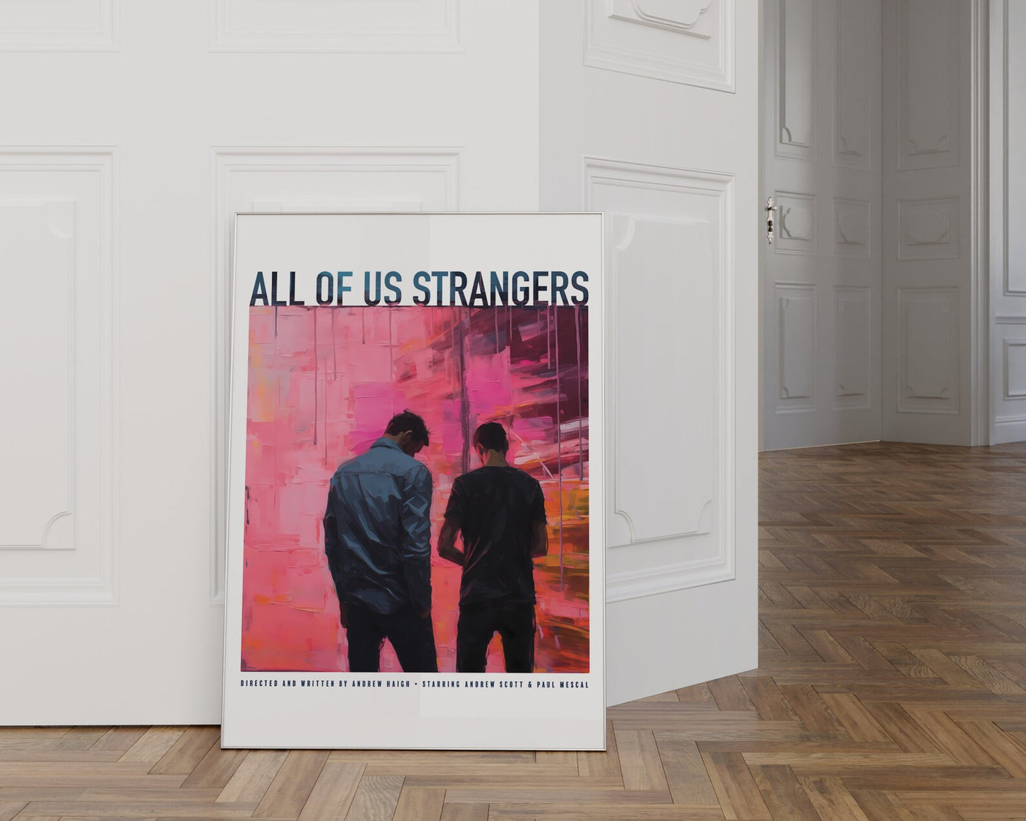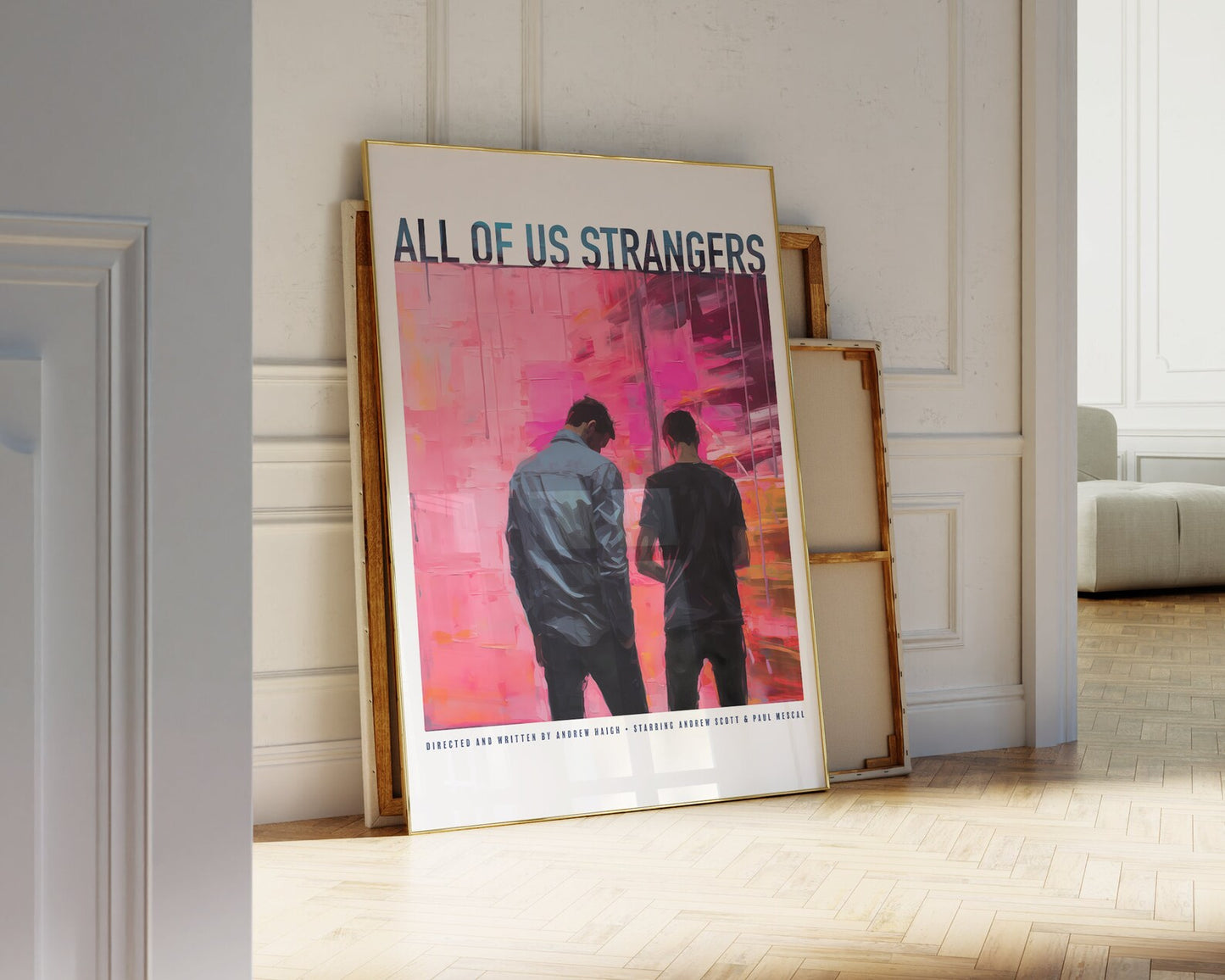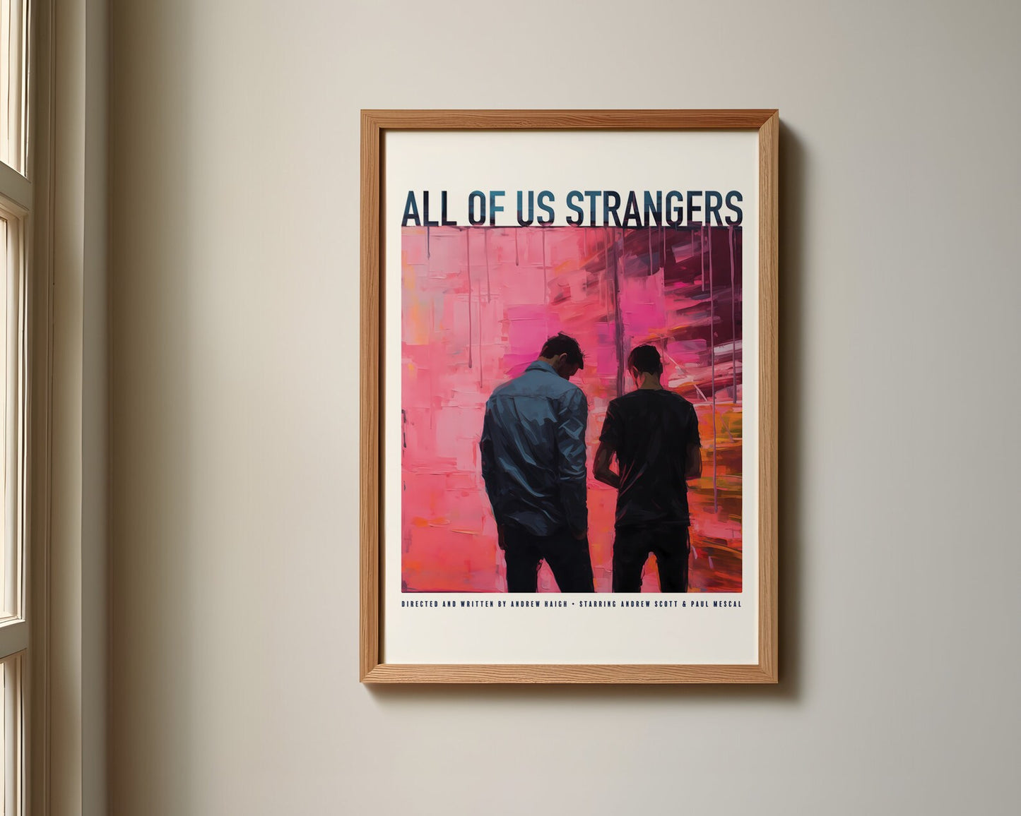 Step into the emotional world of "All of Us Strangers" with this captivating digital print. The Palette Knife Technique style breathes life into the nuanced connection between Lonely London screenwriter Adam and his neighbor Harry. The artwork delicately captures the tension of their interaction, making it a perfect couple's gift that resonates with authenticity. Whether adorning your living space or shared with a loved one, this Gay Print Poster adds a touch of cinematic allure to your home decor. Immerse yourself in the subtle dance of emotions inspired by this evocative moment from the movie.