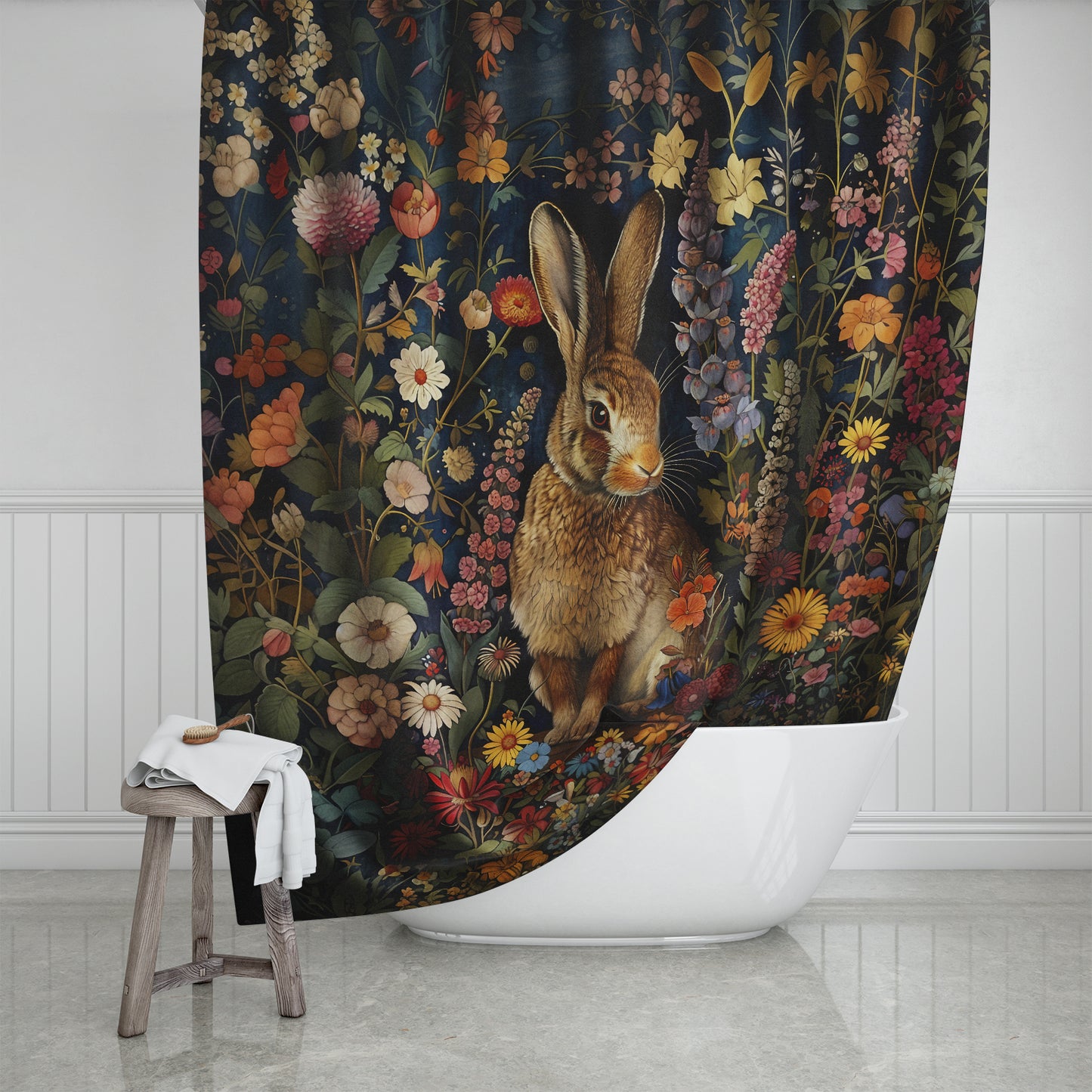 Rabbit Floral Shower Curtain, inspired by the timeless designs of William Morris. This 71in x 74in curtain features a captivating floral pattern that brings the essence of nature into your space. The charming Rabbit adds a touch of woodland magic to your daily routine. Crafted with high-quality materials, this shower curtain is both durable and easy to care for, making it a delightful addition to your bathroom decor.