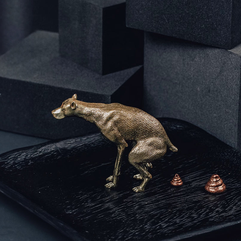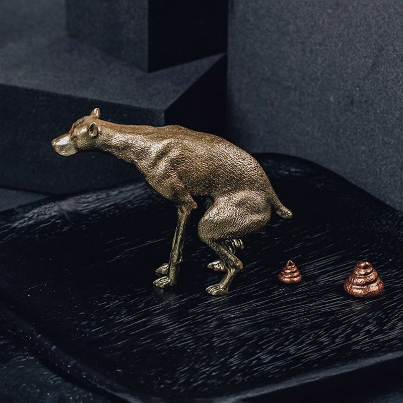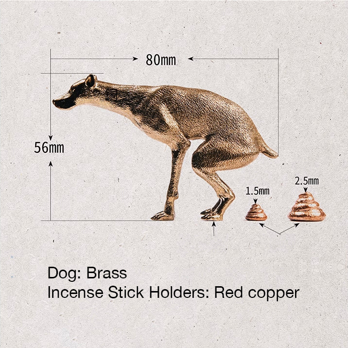 Add a touch of humor and charm to your decor with this quirky Dog Pooping Incense Stick Holder. Crafted from pure brass and accented with red-copper, this unique piece combines artistry with playful whimsy. The detailed design captures a dog in a humorous pose, holding an incense stick above a cleverly shaped poop base.