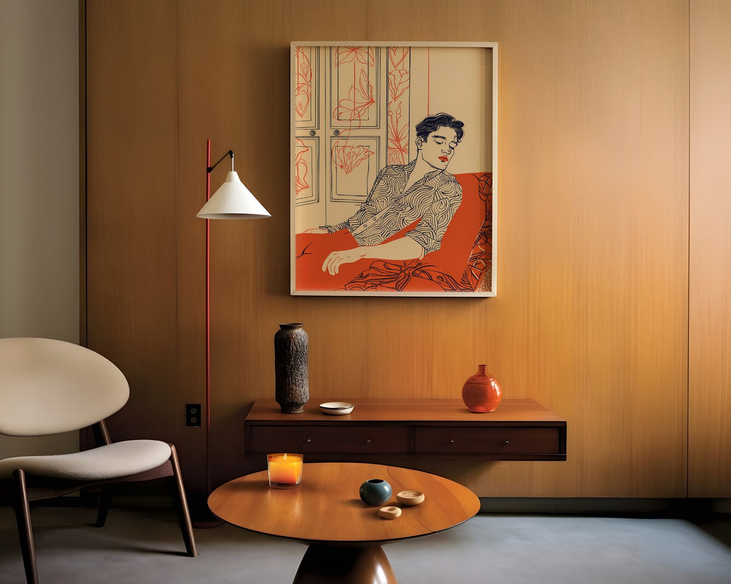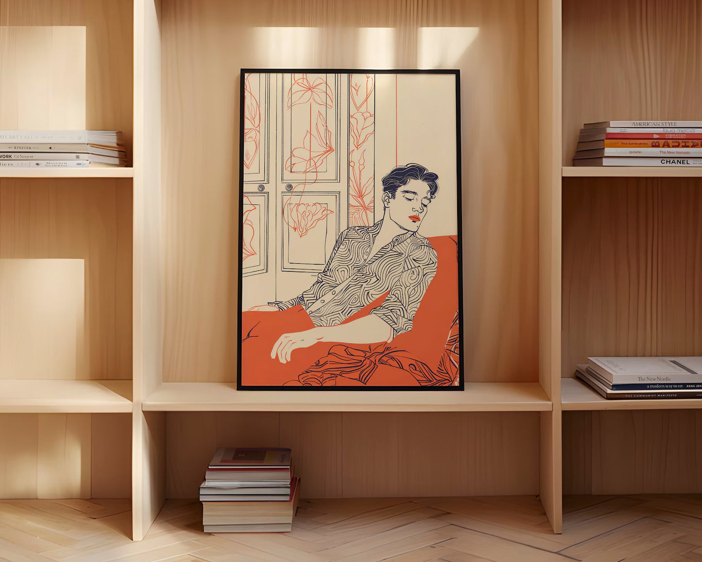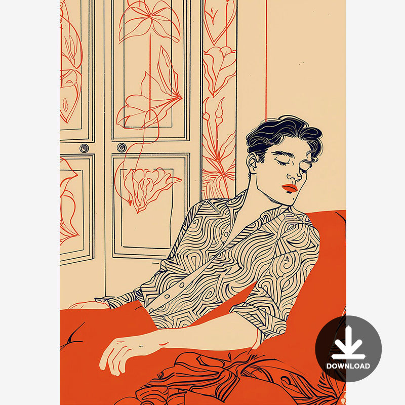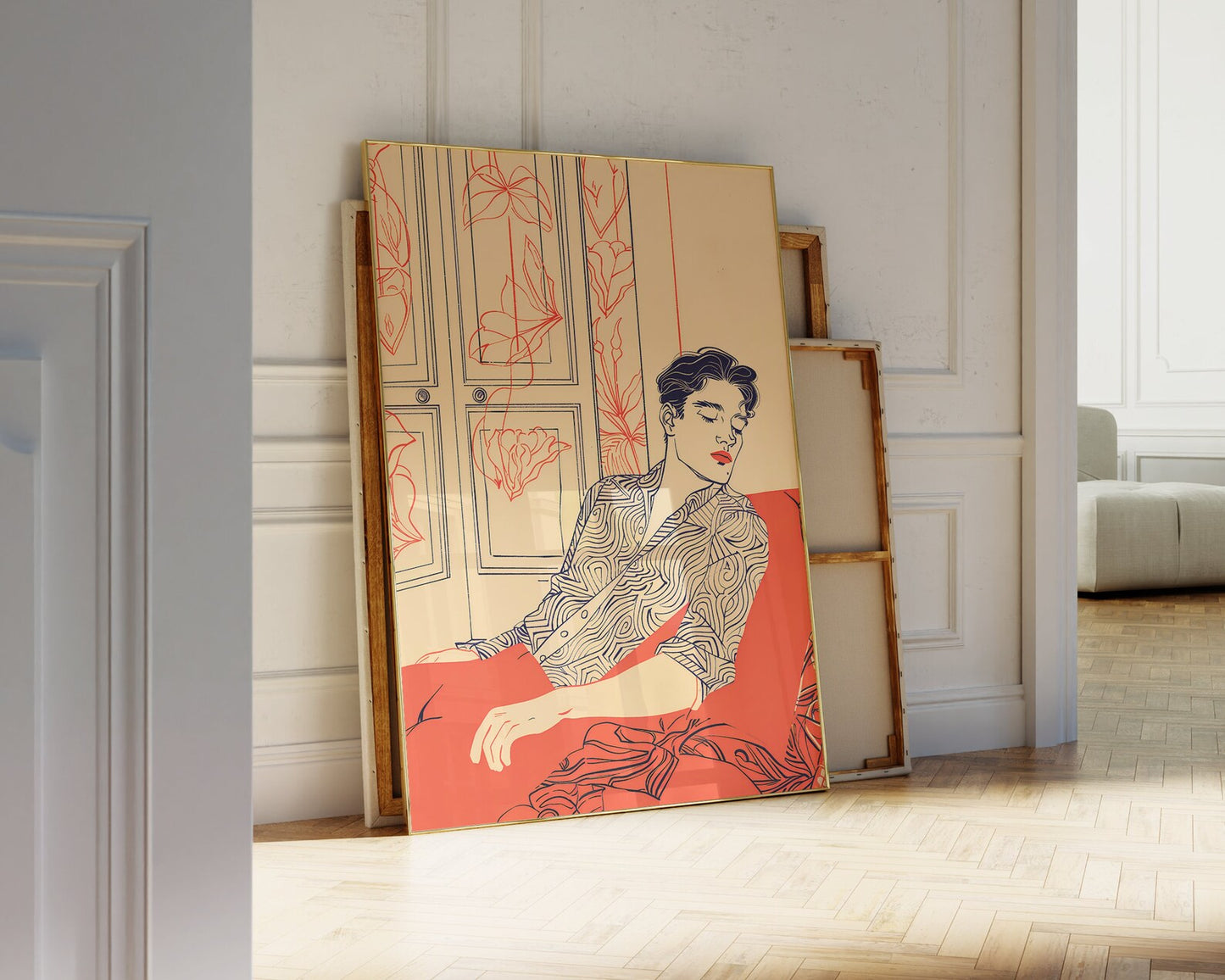 "Dorian" is an exquisite digital print that invites you into the serene world of a gorgeous guy at rest in his living room, portrayed with minimalist elegance. As a representation of Gay Art, this poster captures the essence of quietude and beauty, making it an ideal addition to your Home Decor Wall Art collection. The minimalist style of the artwork not only accentuates the subject's allure but also seamlessly integrates into a variety of living spaces. "Dorian" stands as a testament to the intersection of art and lifestyle, offering a perfect blend of sophistication and simplicity. Elevate your space with this captivating piece that celebrates the grace of repose.