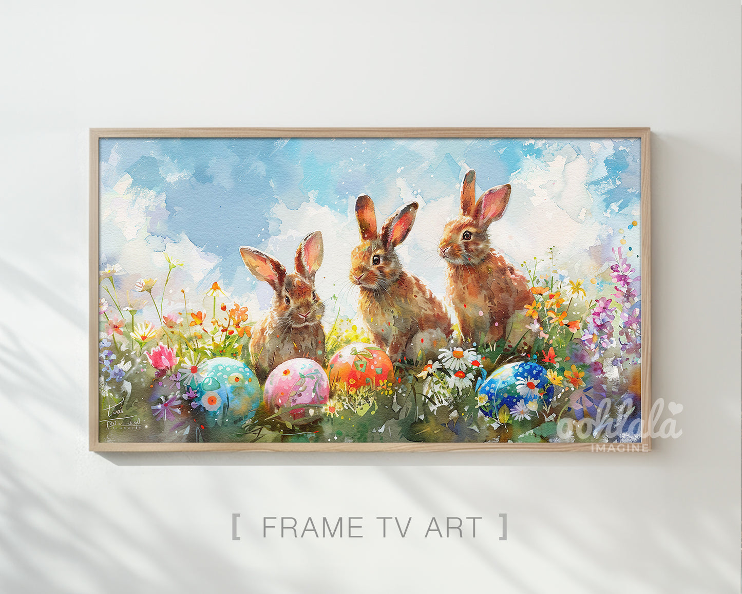 Artistic Easter Bunny Easter Egg Decor Frame TV Art Wallpaper