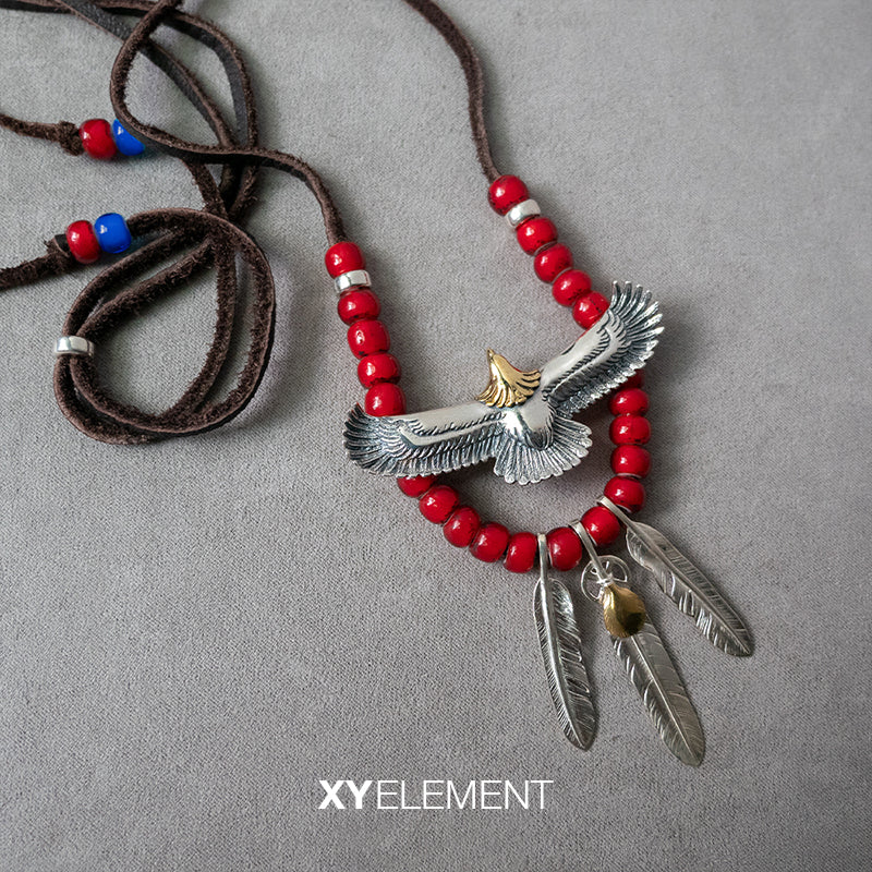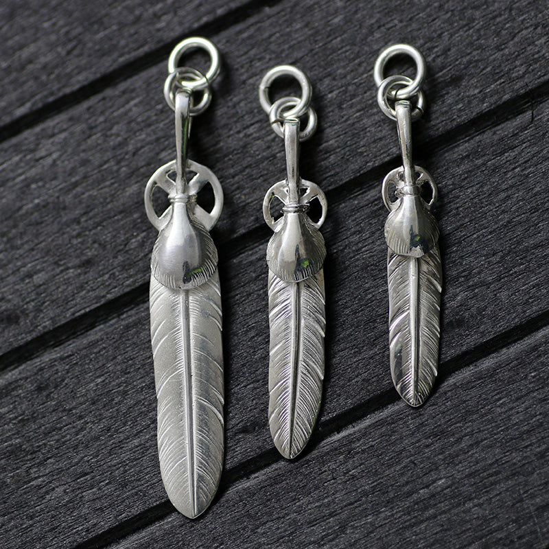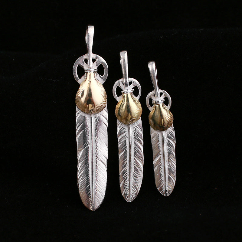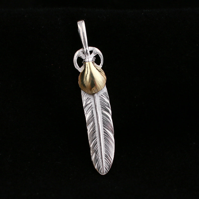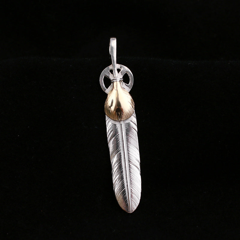 Silver Eagle Pendant AU999 24K Gold Accent, Unique Engraved Feather Pendant