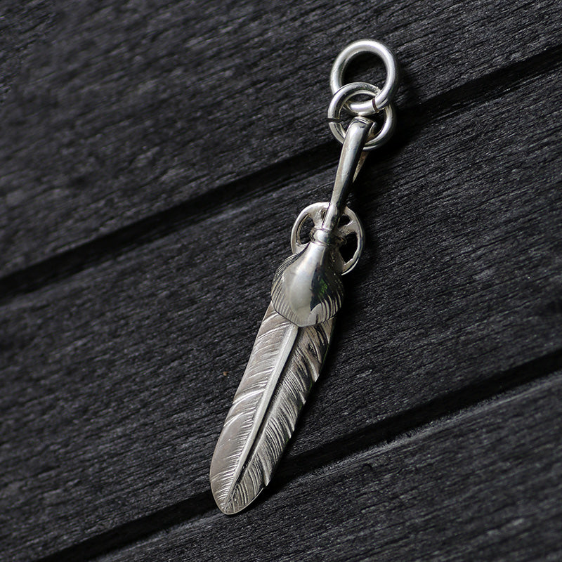 Double Silver Feather Pendant with Movable Covert Silver Feather