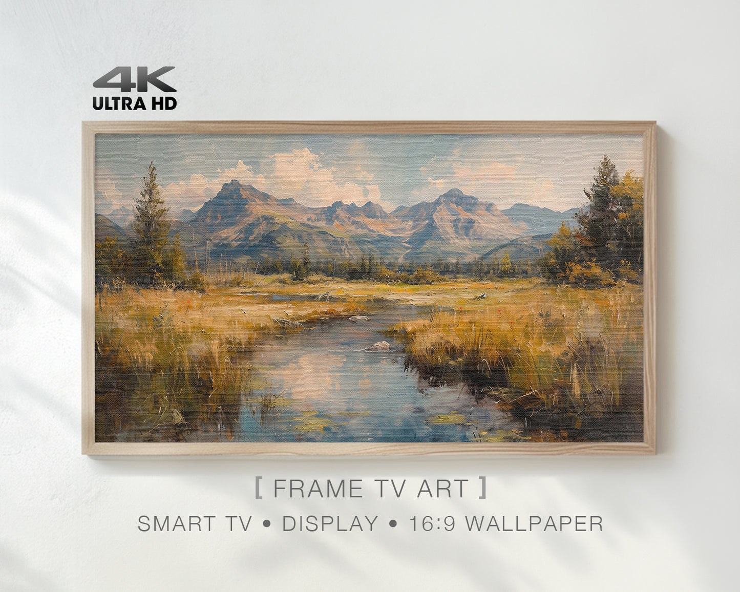 Abstract Landscape Frame TV Art Country Farmhouse Wallpaper