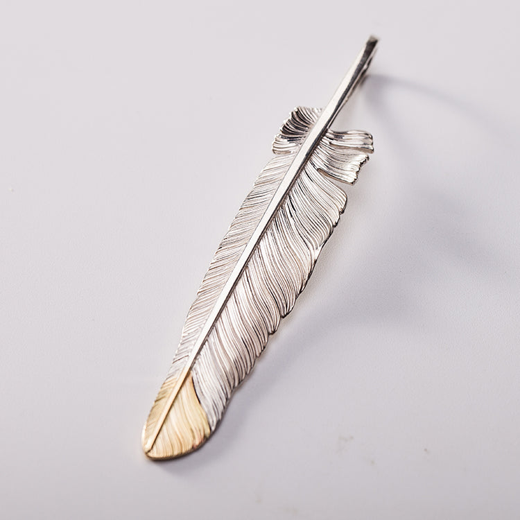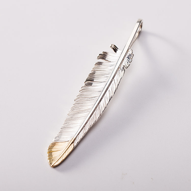 Silver Feather Pendant 18K Gold Tip Feather
