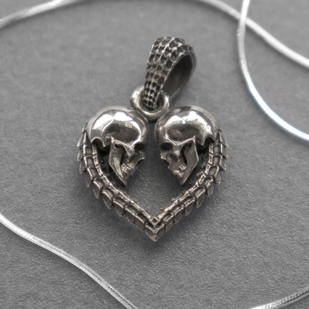 Silver Skull Spine Heart 2-Sided Pendant | Forever Love, Eternity, Love You to Death
