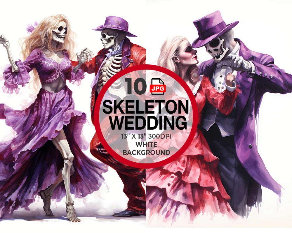 Skeleton Baron and Baroness Wedding Watercolor Digital Download