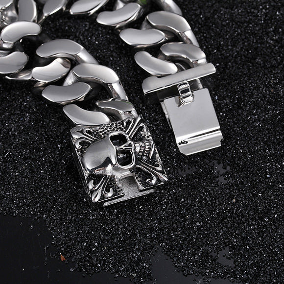 Skull Cuban Link Chain Stainless Steel Bracelet
