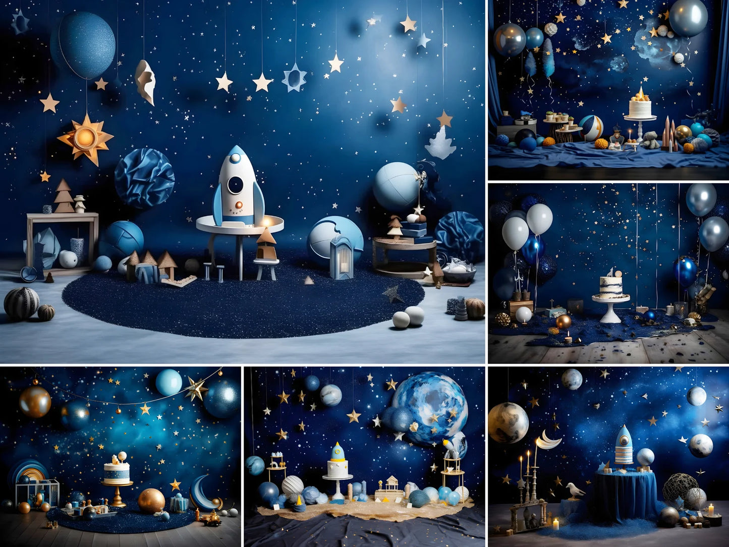 Starry Galaxy Birthday Digital Backdrop Set of 28