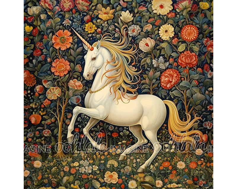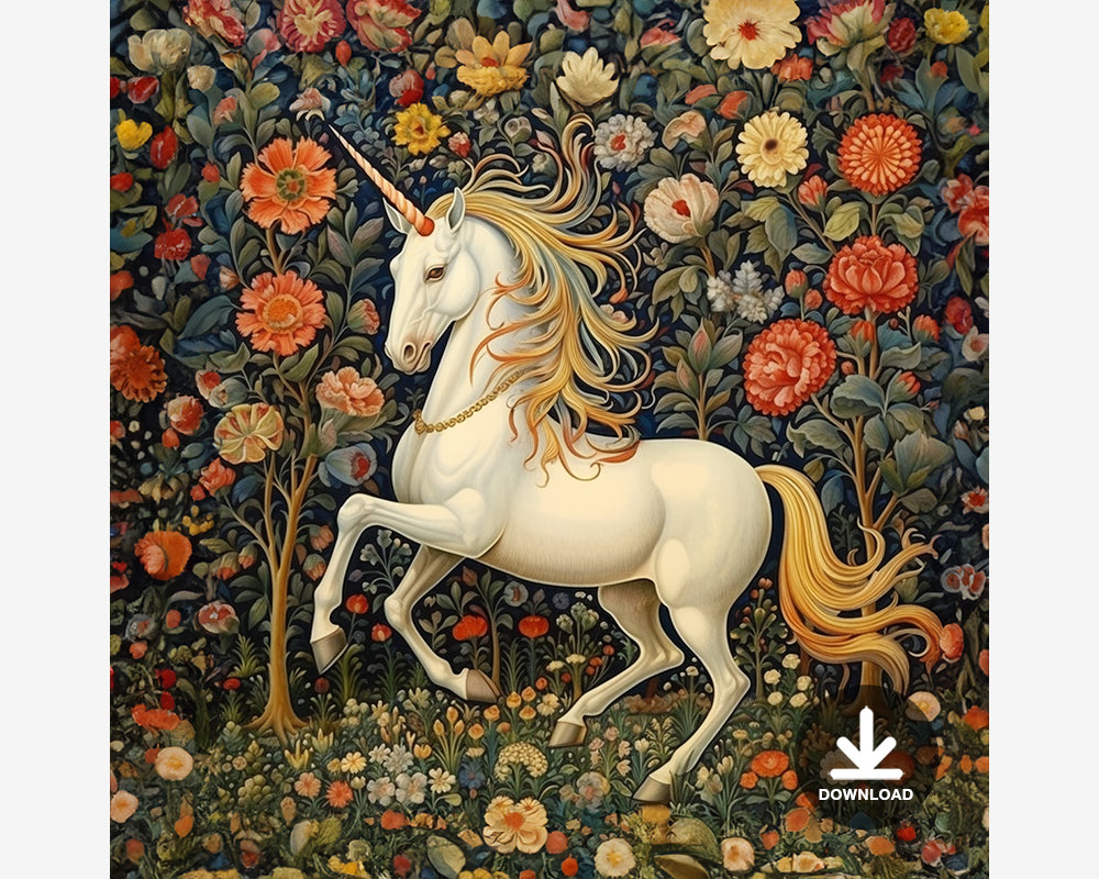 Unicorn in Floral Garden Digital Art Download