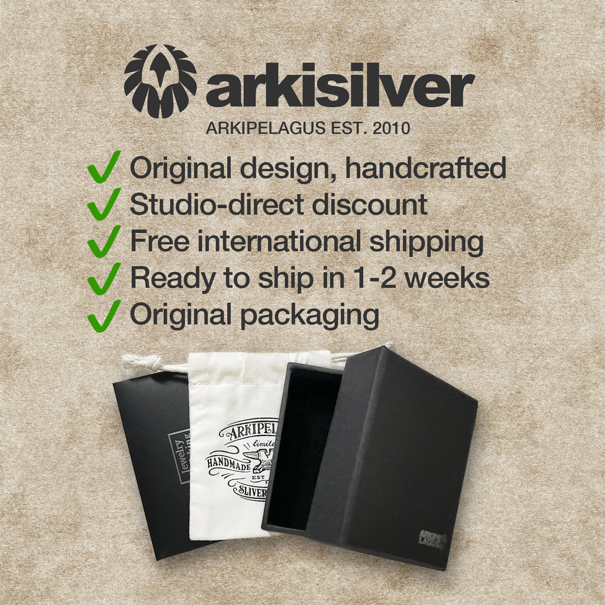 ARKI Silver (Arkipelagus) - based in Hong Kong. Even when sold through white-label studios or resellers in the US, all ARKI jewelry is still made exclusively at the original studio. These resellers typically need 2–3 weeks just to prepare for shipping, as they must first receive the item from ARKI before forwarding it to buyers — unless they have in-stock items on hand.