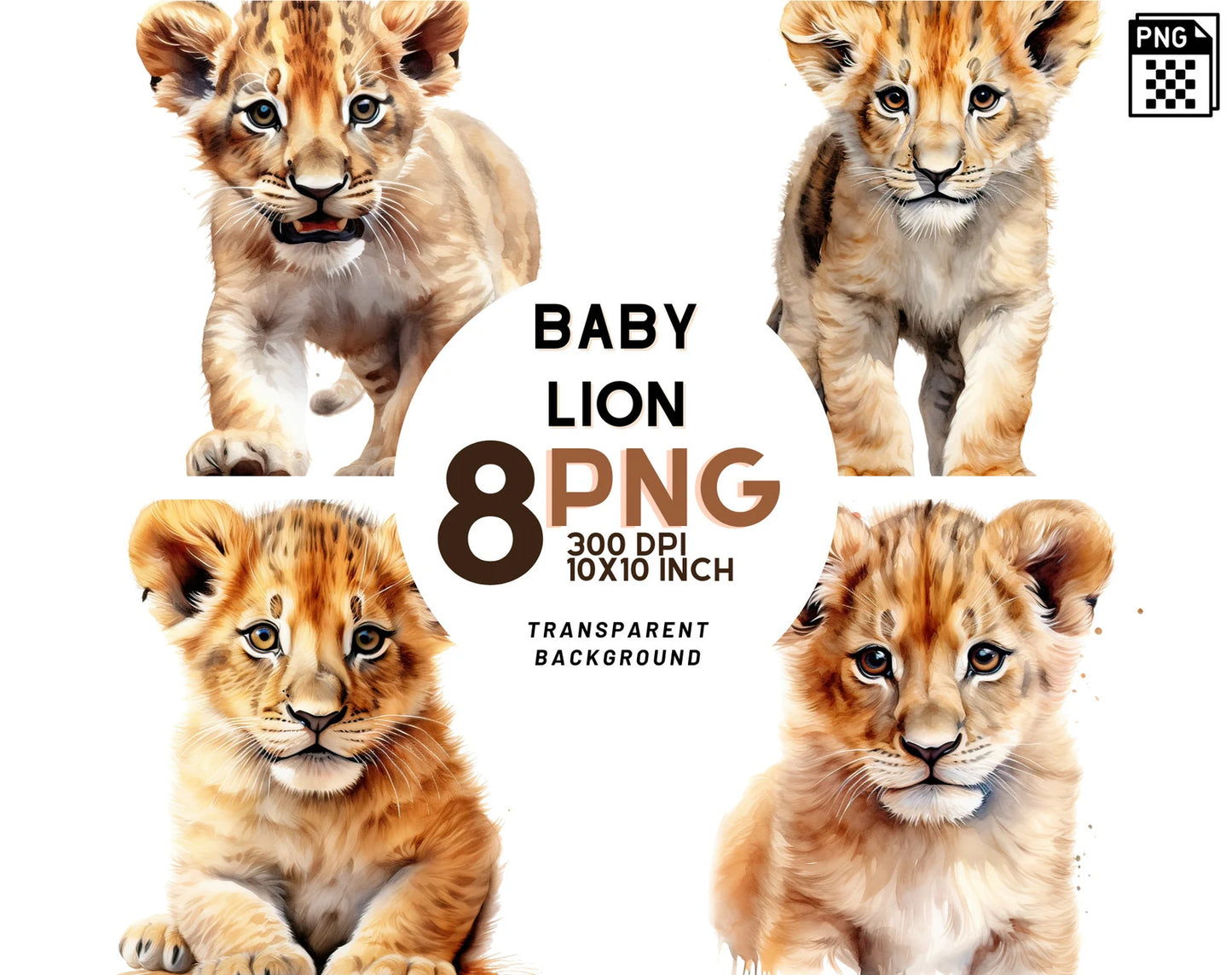 Baby Lions are beloved for their adorable looks and playful nature, known for their endearing roars and cute paws. With this in mind, this clipart set is an ideal addition to your designs, perfect for creating projects that showcase the beauty of wildlife and animal love.
