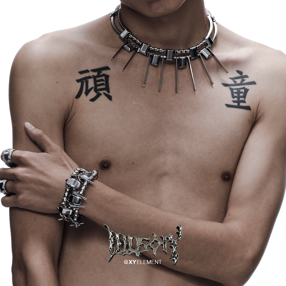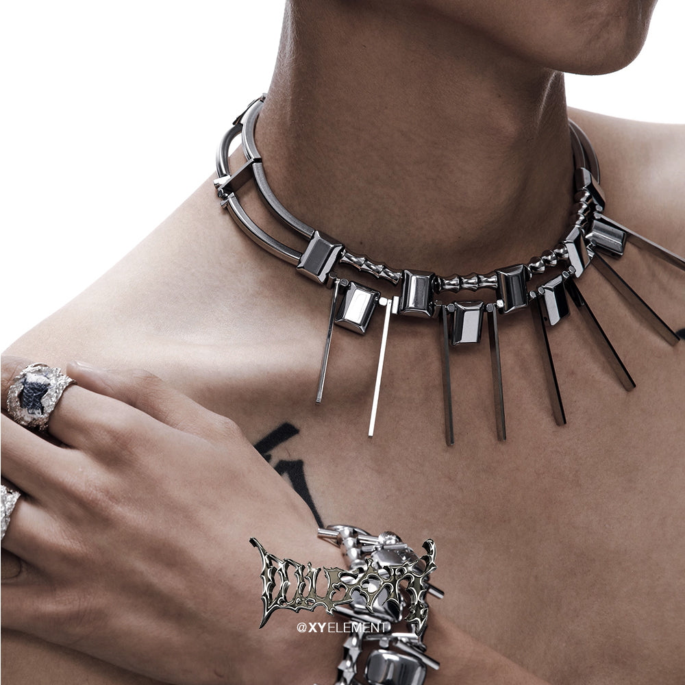 Step into the realm of edgy sophistication with our Double-layered Heavy-duty Gothic Mechanical Stainless Steel Choker Necklace. This punk-inspired accessory merges industrial grit with gothic allure, infusing a touch of K-pop flair for a truly unique statement. Crafted for durability and style, it's the ultimate choice for those who embrace the bold and redefine convention.