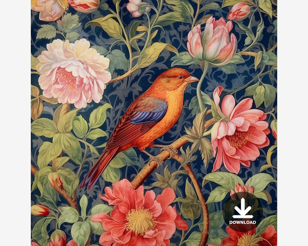 William Morris Inspired, ideal for creating personalized pillow covers, posters, postcards, canvas wall art, tapestries, notebooks, and more. Download and print at your local shops or online stores.
