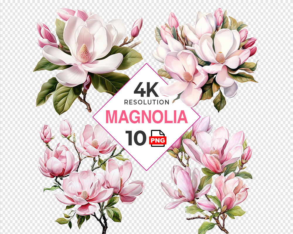 Add a touch of nature to your digital projects with this beautiful Magnolia Clipart set. With 10 high-quality PNG files, you can easily incorporate these lovely botanical prints into your scrapbooking, digital journaling, invitations, and more! Each image features vibrant colors and fine details that capture the beauty of flowers in a vase.