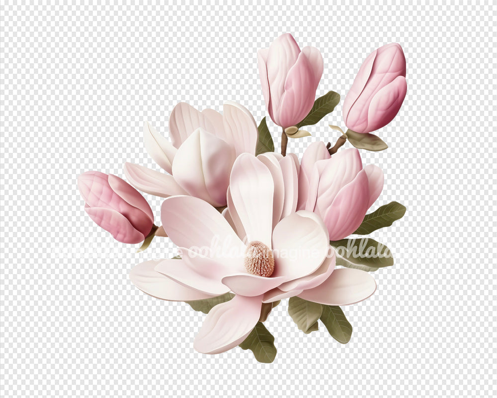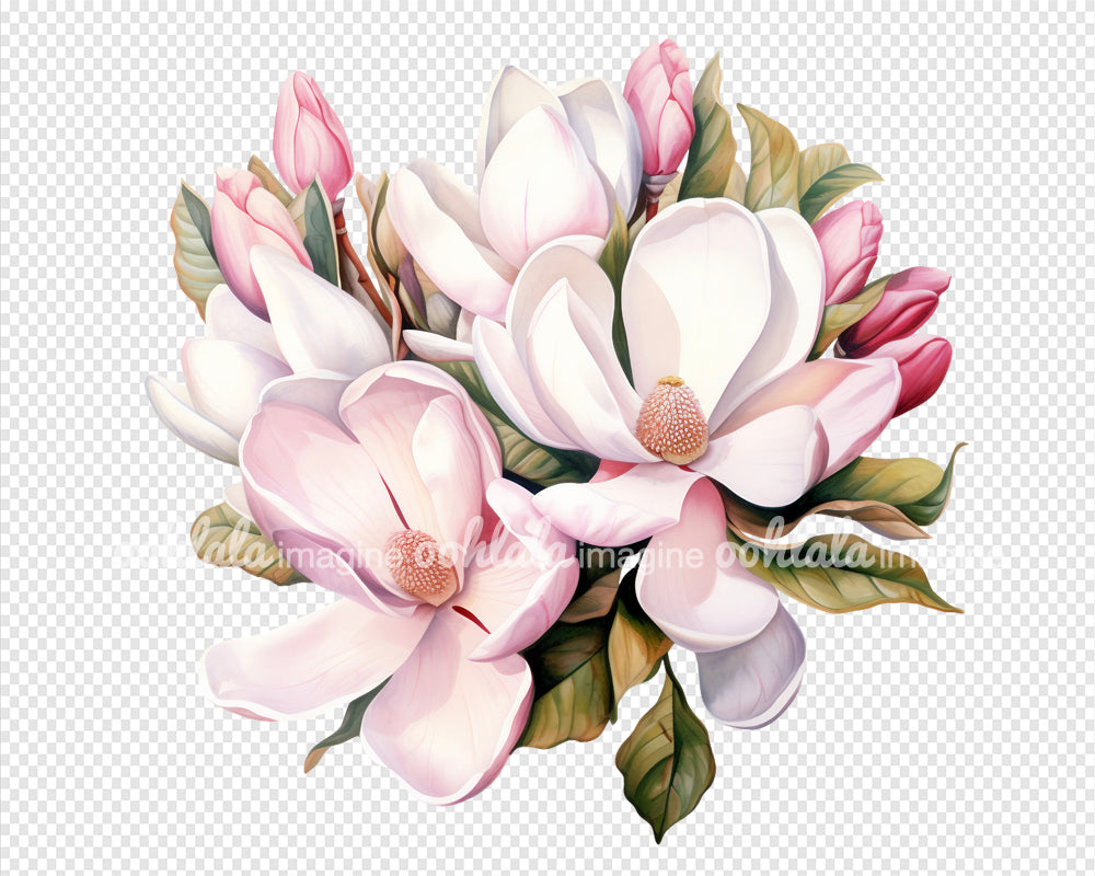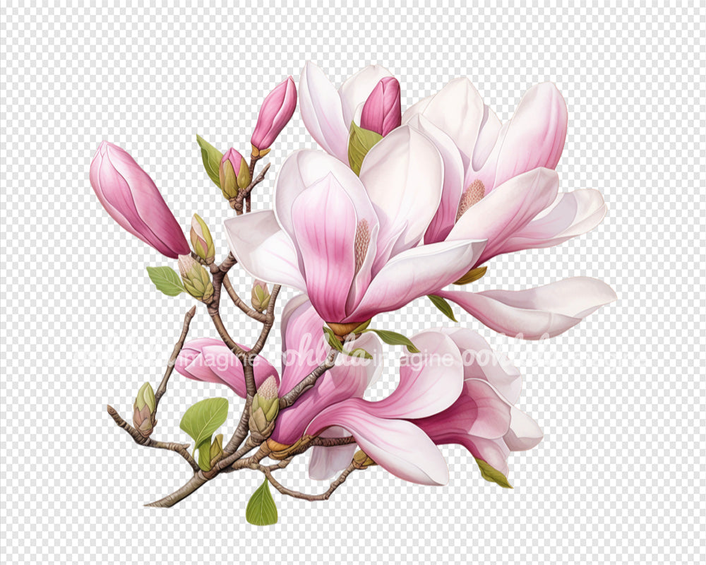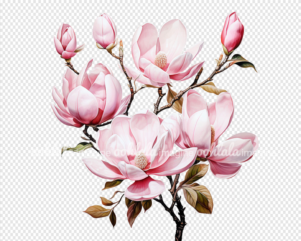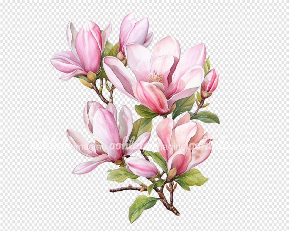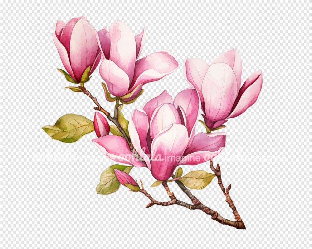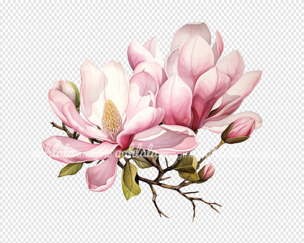 Watercolor Pink Magnolia Clipart