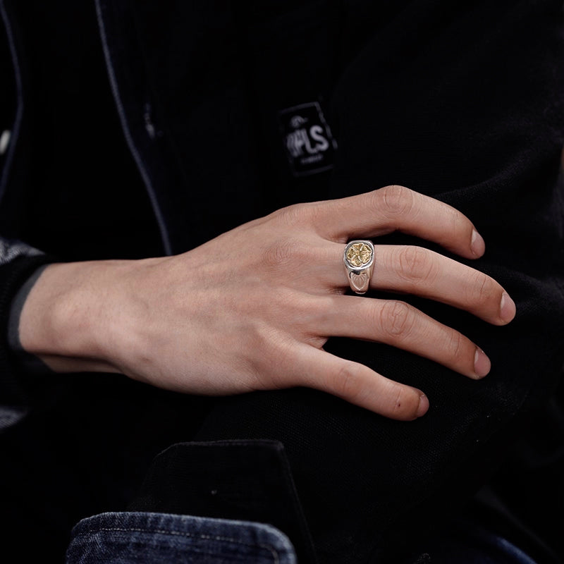 Japanese Rose (Multiflora Rose) Signet Ring - original design by Goro Takahashi, the legendary Japanese craftsman of Native American style jewelry. Handcrafted by ARKIPELAGUS, ready to ship in 1 week directly from studio with original packaging.