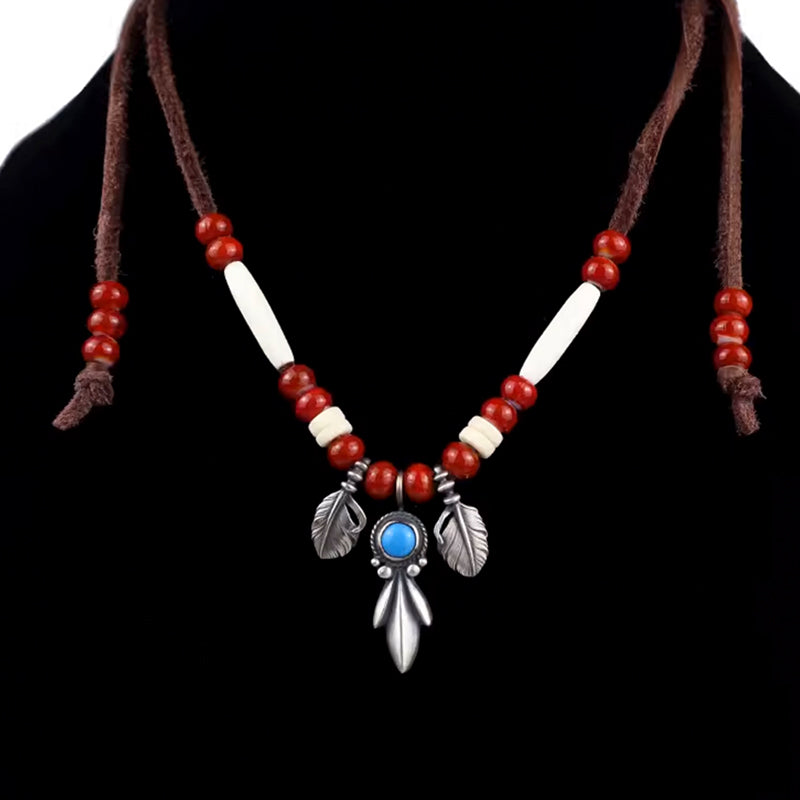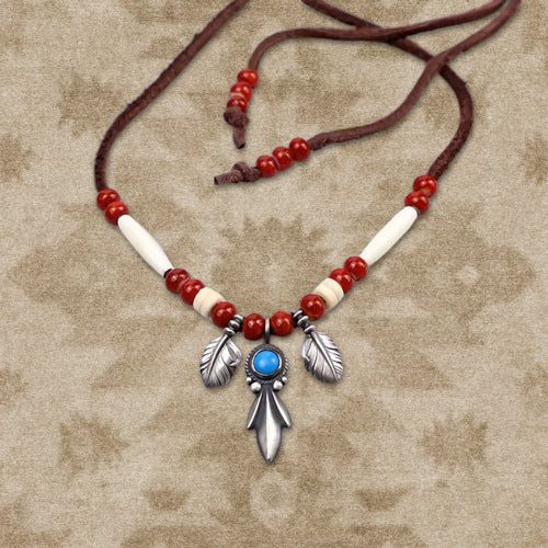 Navajo Inspired Silver Pendant Leather Cord Necklace