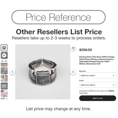 Honor history with meticulously handcrafted WW2 US Air Force Pilot Wings Ring, made from premium 950 sterling silver. This exquisite ring features a detailed shield flanked by beautifully curved wings, capturing the iconic insignia of WWII USAF pilots.