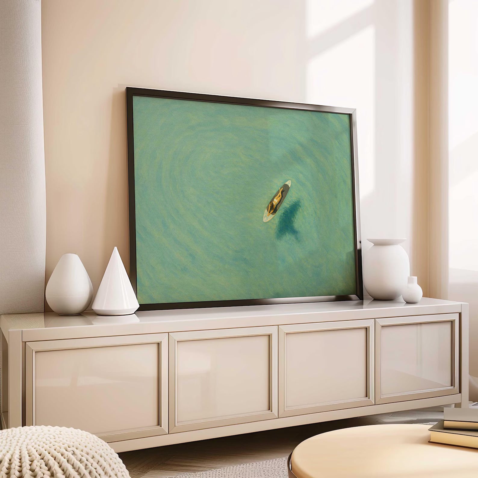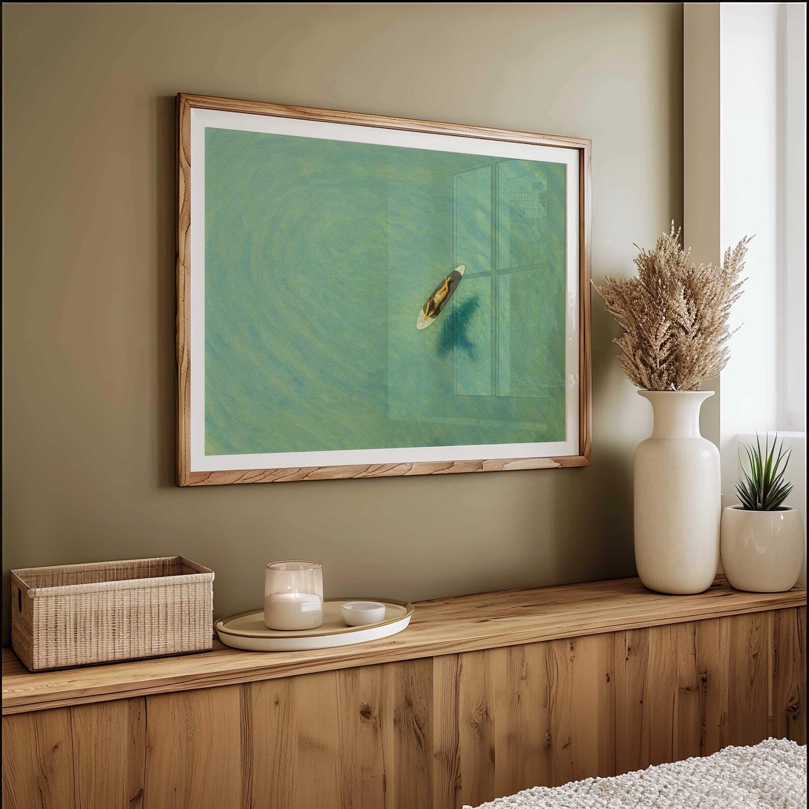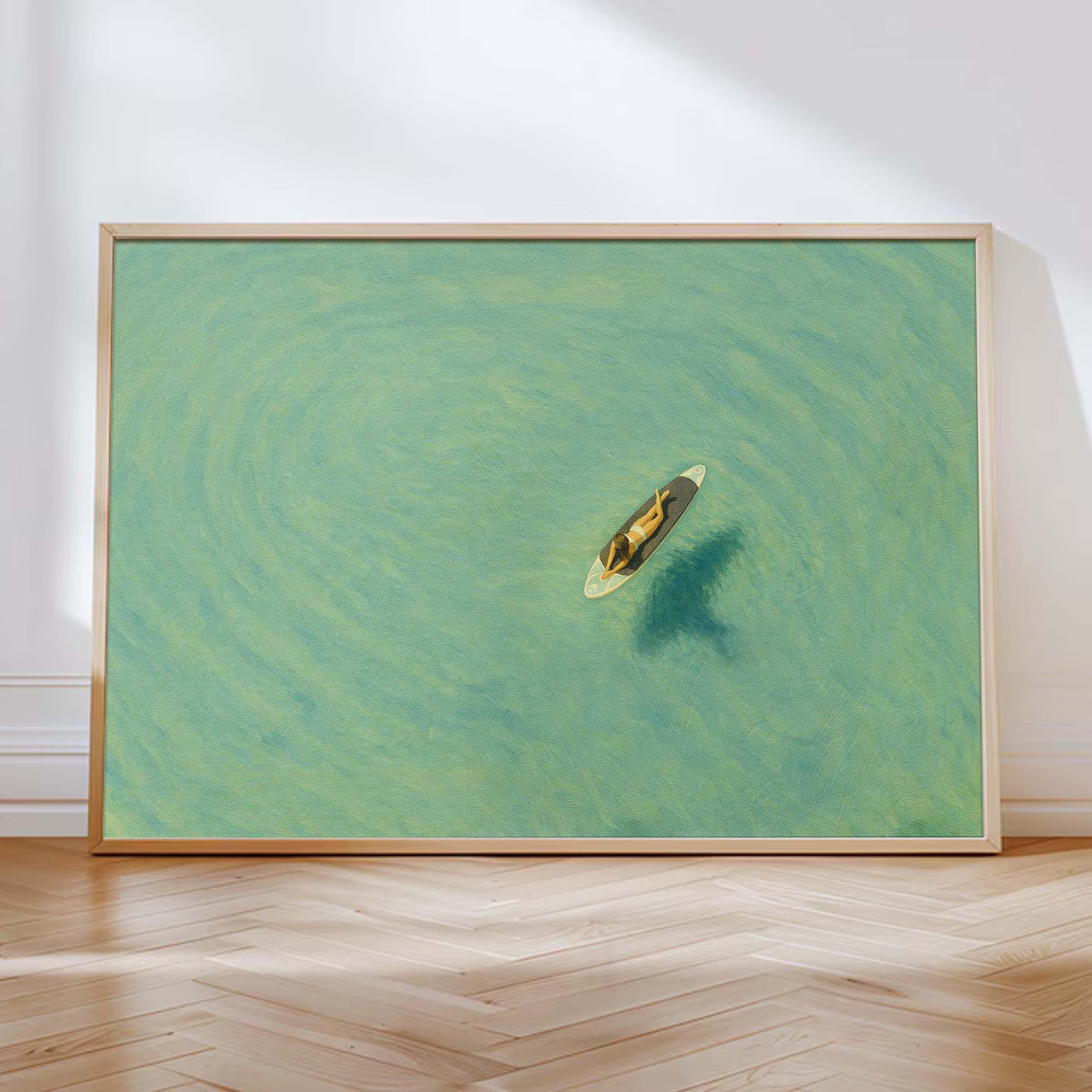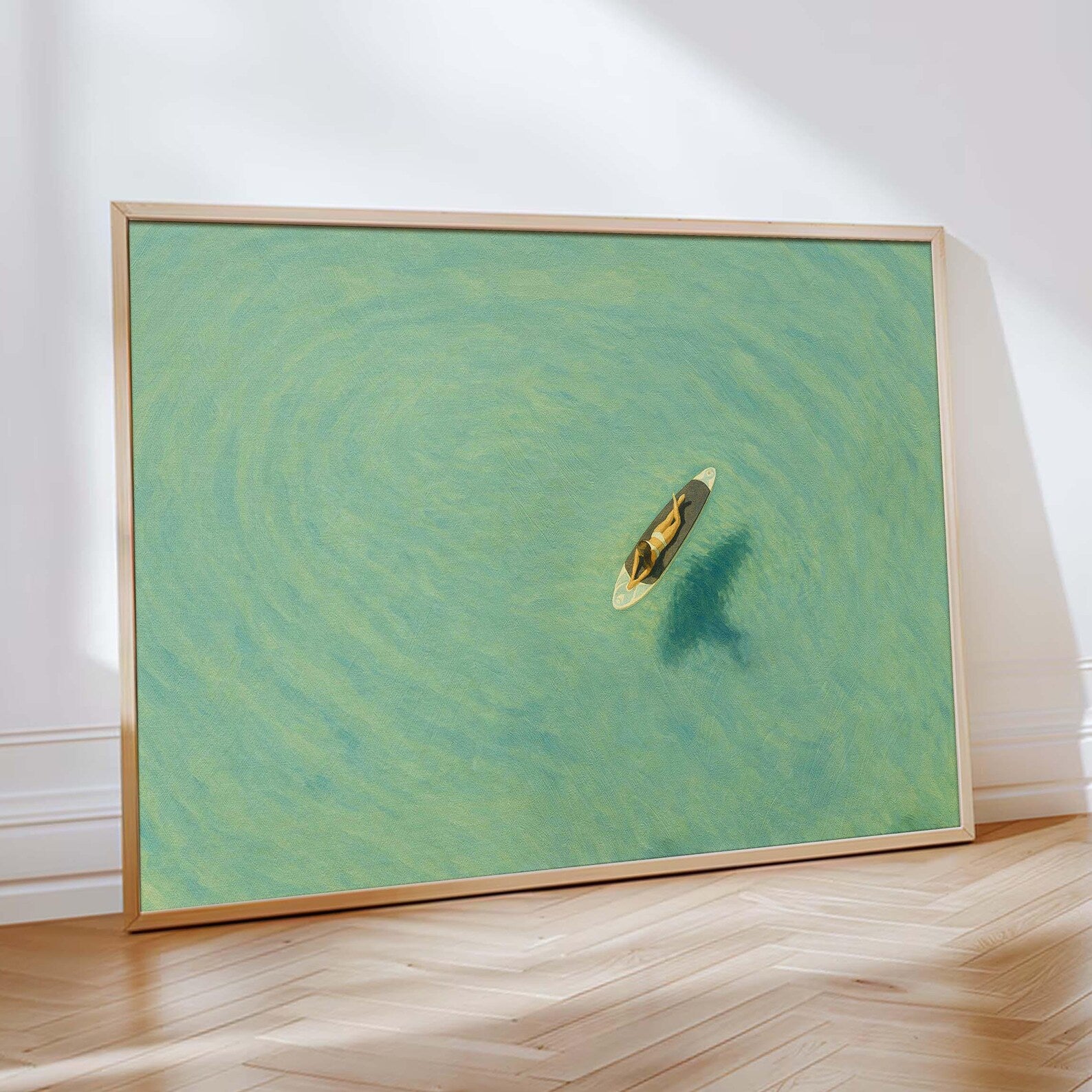 Girl Aerial Surfer Minimalist Art Print, Minimalist Beach Wall Art, textured digital print, Modern Decor, perfect vintage wall art decor for home, office, hotel, motel, and any space that needs decoration. *Print only, shipped rolled up in a protective tube.