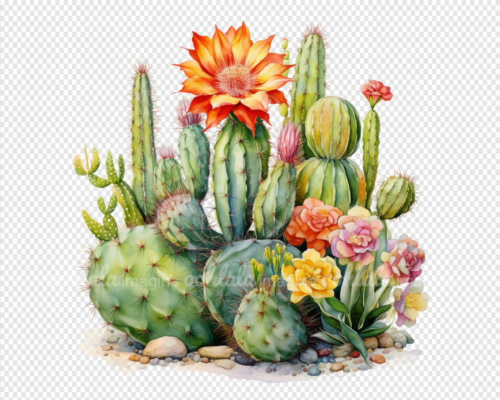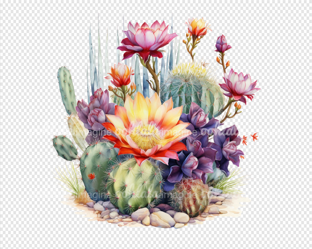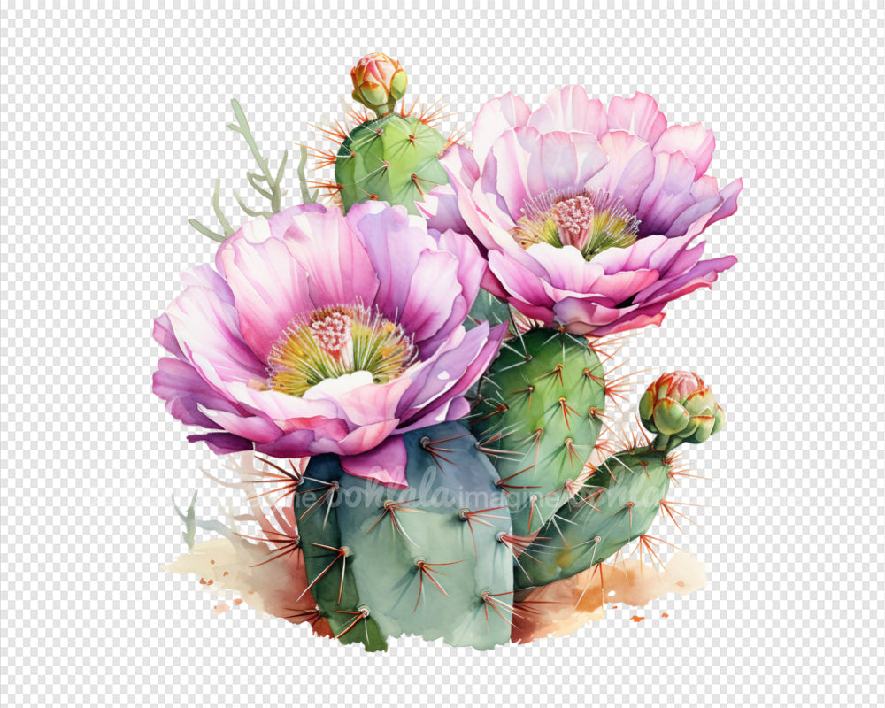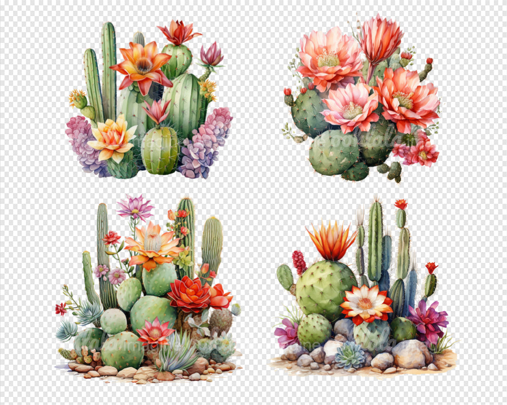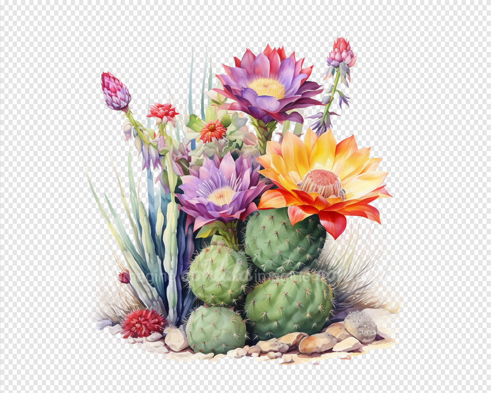 Desert Cactus Flowers Watercolor Clipart