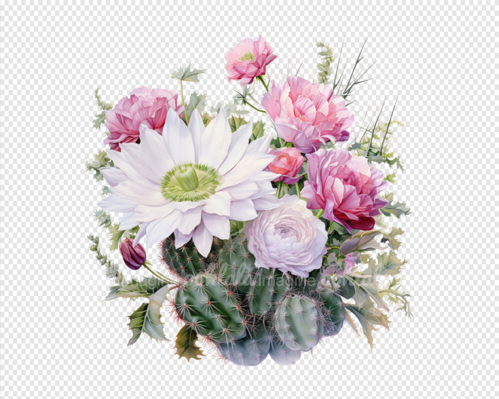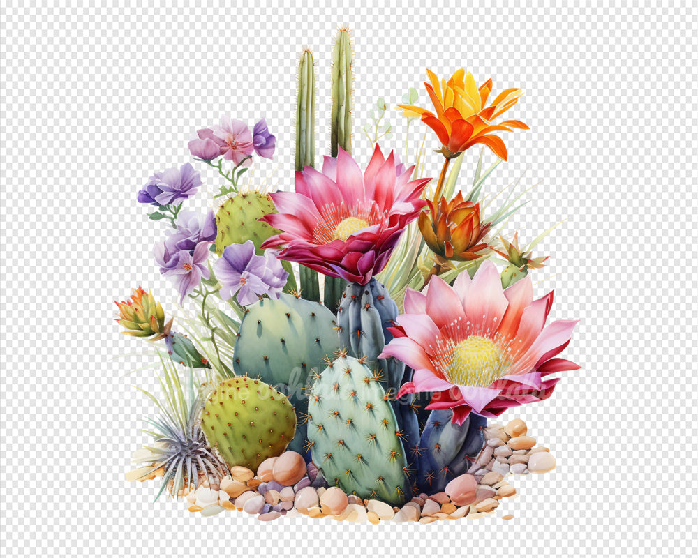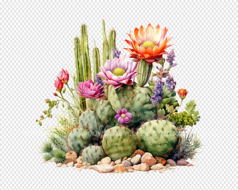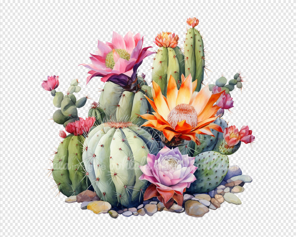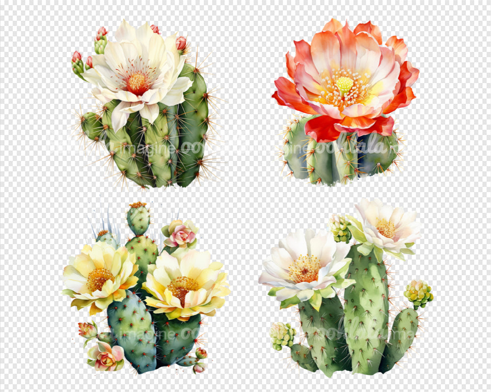 Exquisite Desert Cactus Flowers Watercolor Clipart Set. Featuring 18 premium PNG files, this collection is perfect for botanical prints, digital journals, scrapbooking, and more. Each image captures the intricate details and vibrant colors of desert cacti, bringing a touch of natural allure to your projects. Whether you're a nature enthusiast, artist, or avid scrapbooker, this versatile clipart set is a must-have addition to your collection. Download now and let your creativity bloom!