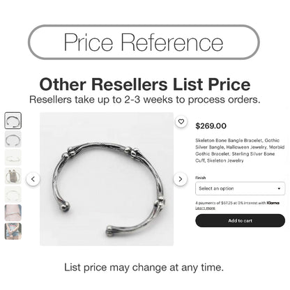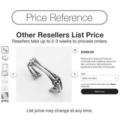 Unleash your dark side with this handcrafted Skeleton Bone Cuff Bracelet, made from premium sterling silver. Inspired by skeletal forms, its realistic bone details add a bold, macabre edge—perfect for gothic fashion, Halloween lovers, and fans of the morbid. Designed with four silver bones joined into a curved bangle, this piece is part of our Gothic collection of bone-themed bracelets, necklaces, and rings.