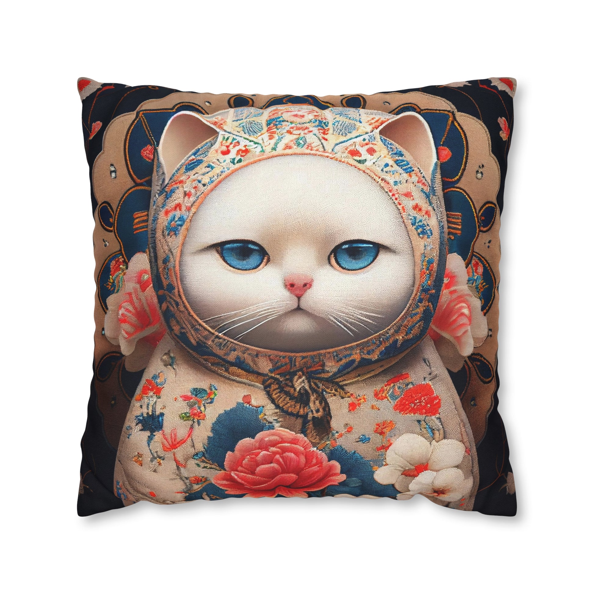 Introducing Matryoshka Cat dgital art print. This unique and eye-catching pillow case features a charming design of a cute cat in as a Matryoshka doll. Despite its intricate embroidery texture, please note that this is a digital art print and not made of actual embroidered materials. Nonetheless, it's a great way to add a touch of whimsy and personality to any living space. It's the perfect accent for any couch, bed, or chair. Add a playful touch to your home décor.