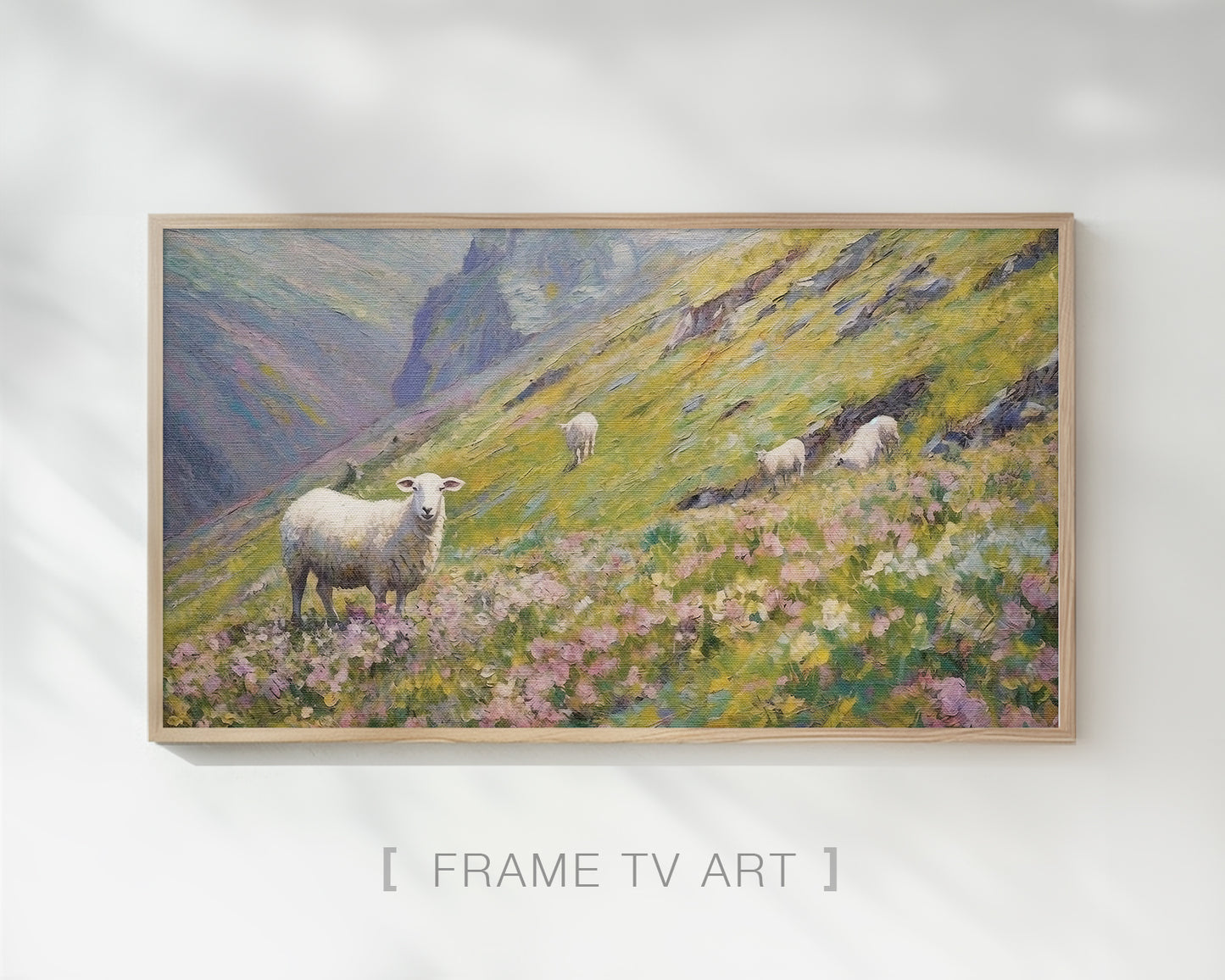 Sheep on the Hill Landscape Frame TV Wallpaper