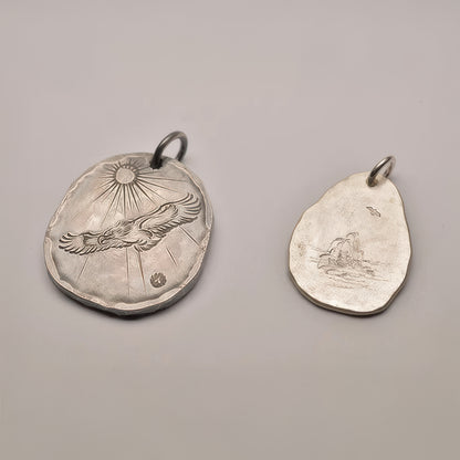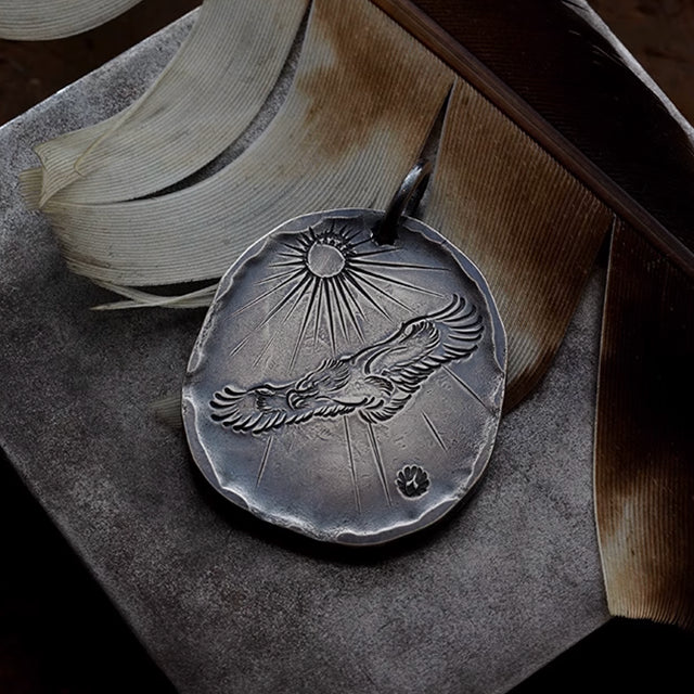 Soar with nature’s spirit in our Sterling Silver Eagle Pendant — a stunning, handcrafted piece celebrating freedom and strength. Featuring a majestic eagle etched in fine detail against radiant sunrays, this double-sided pendant also reveals a tranquil mountain scene on the back. Crafted from premium 925 sterling silver, it’s a meaningful accessory for nature lovers, wildlife enthusiasts, or anyone drawn to powerful symbolism.