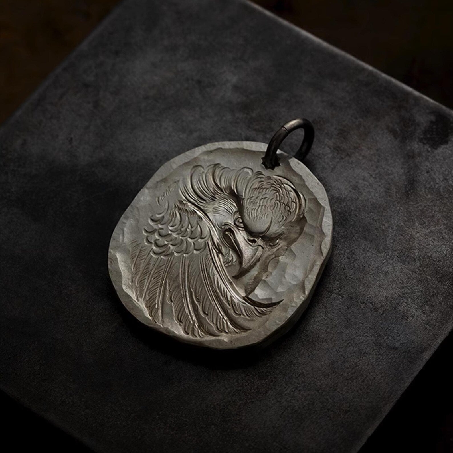 Silver Eagle Medallion Pendant, Handmade Hawk Silver Pendant