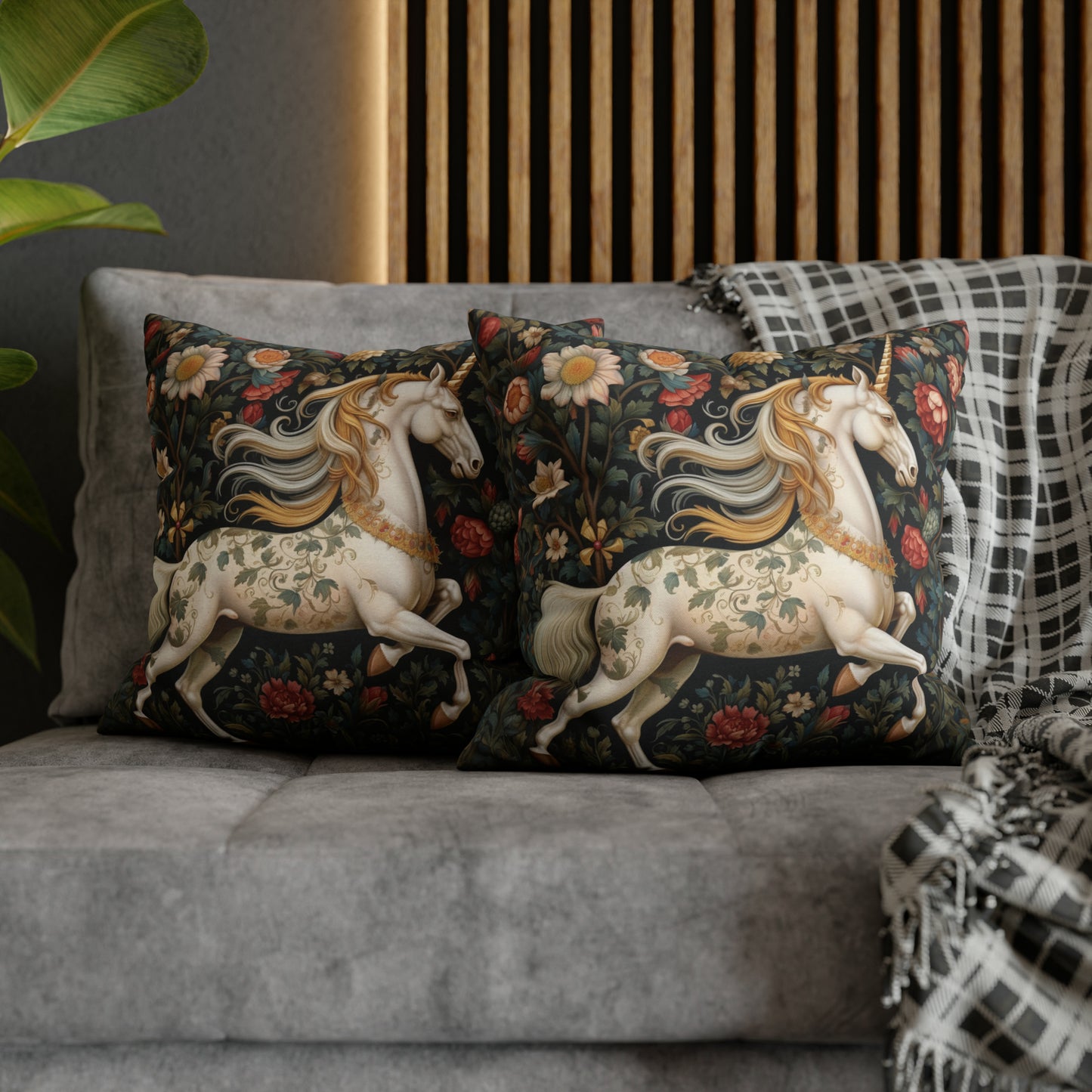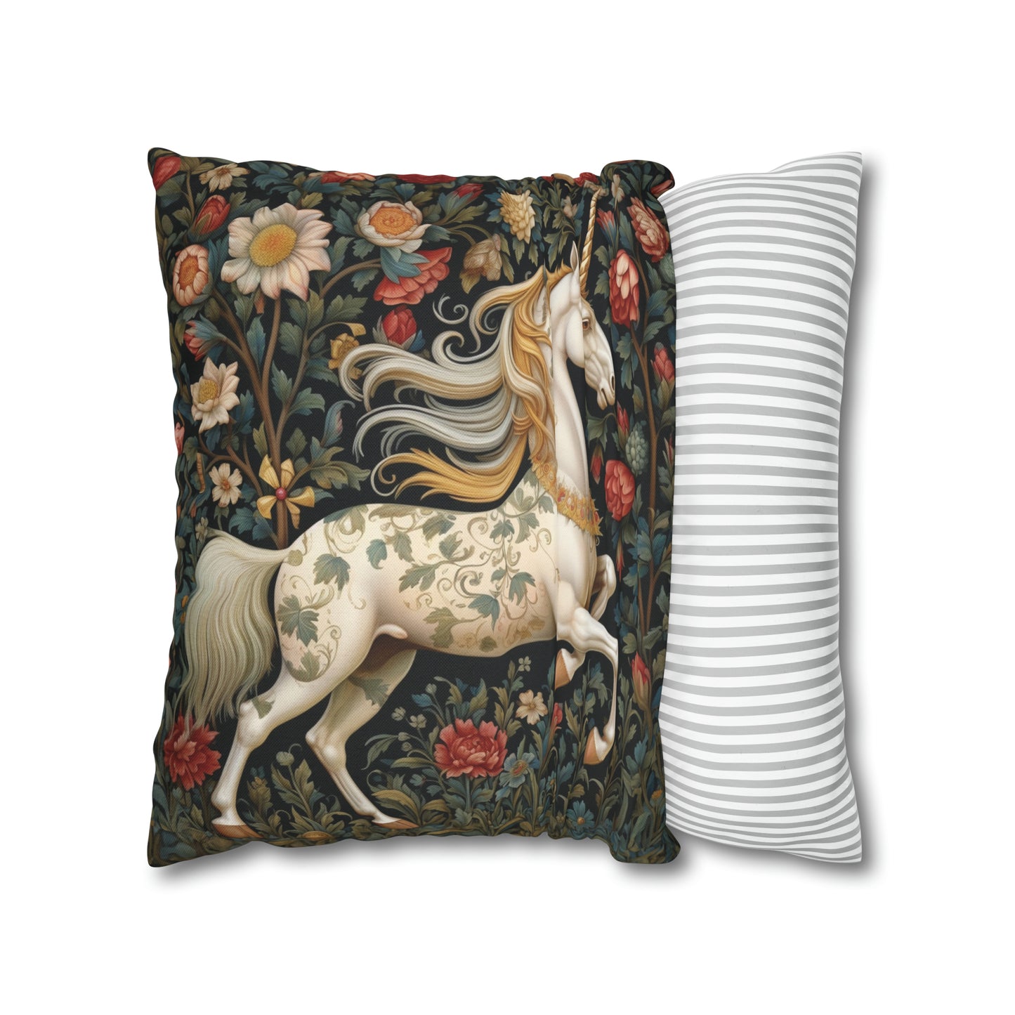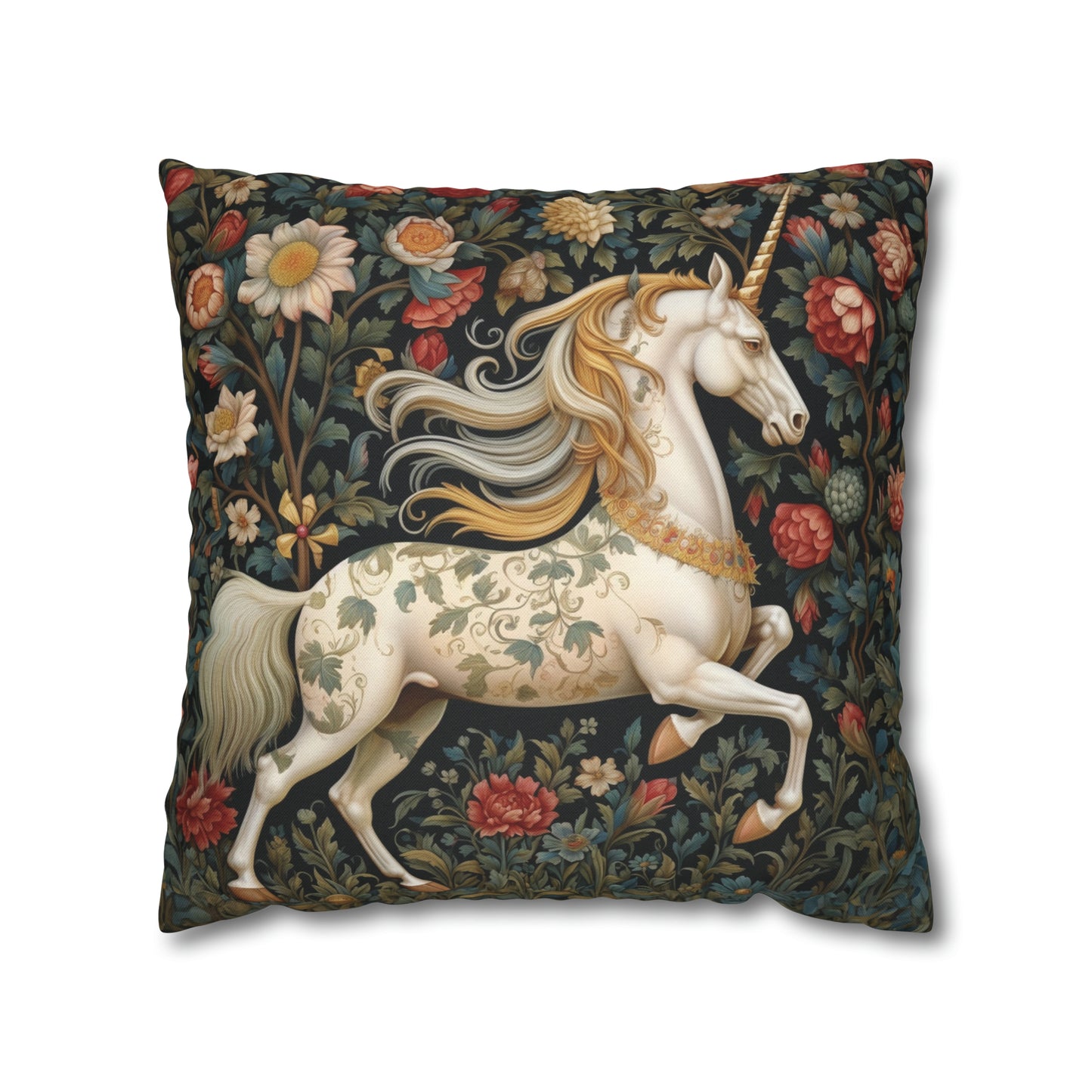 Elevate your home decor with the allure of classic art embodied in this William Morris-inspired unicorn pillow. Immerse yourself in the fantasy and elegance as a majestic unicorn graces a floral scene. Perfect for enthusiasts of mythical creatures and historical art, this expertly crafted pillow ensures both durability and timeless aesthetic appeal. It stands as a captivating centerpiece, igniting conversations and infusing a touch of magic into any room.