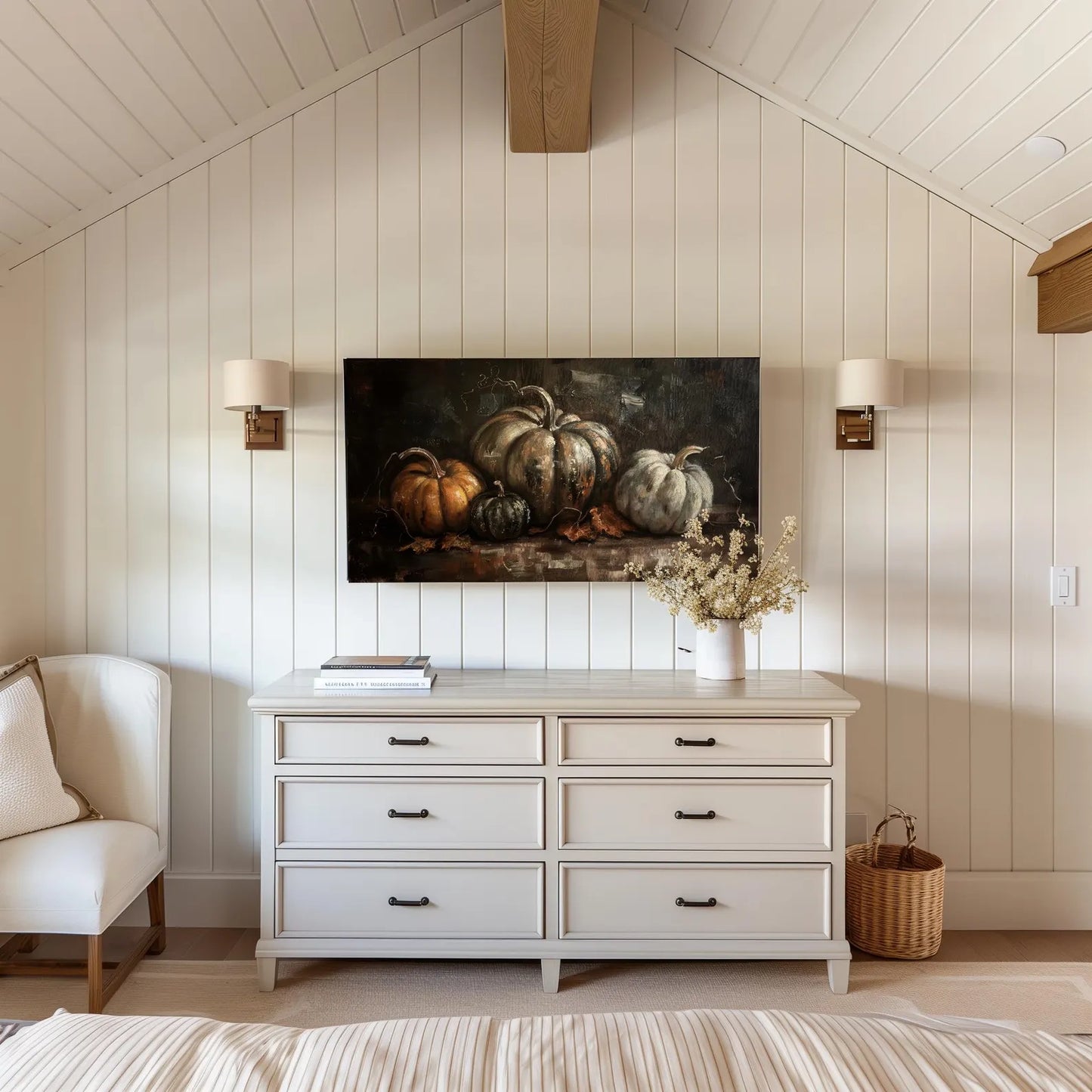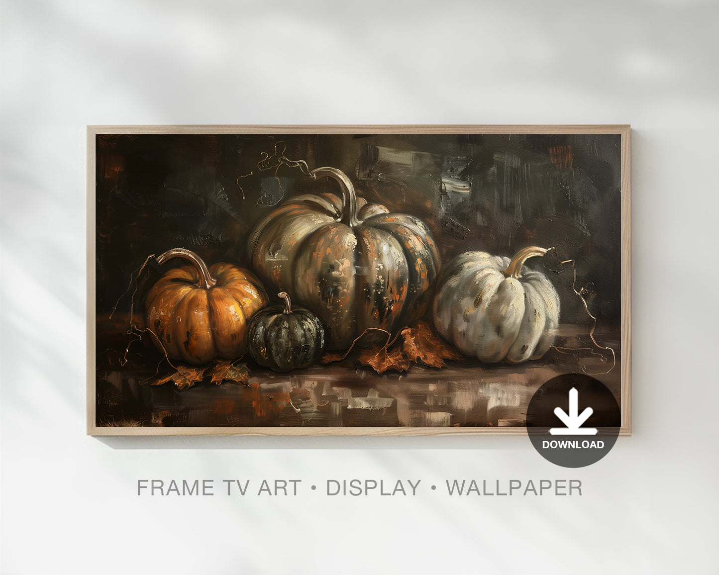 Vintage Autumn Pumpkins Frame TV Art, Dark Halloween Pumpkin Painting, Moody Halloween, available in 4K Ultra HD, it’s perfect for Samsung Frame TV and Smart TVs. It’s also compatible with a 16:9 ratio for commercial displays in stores, as well as personal use on wallpapers for computers, laptops, and iPads.