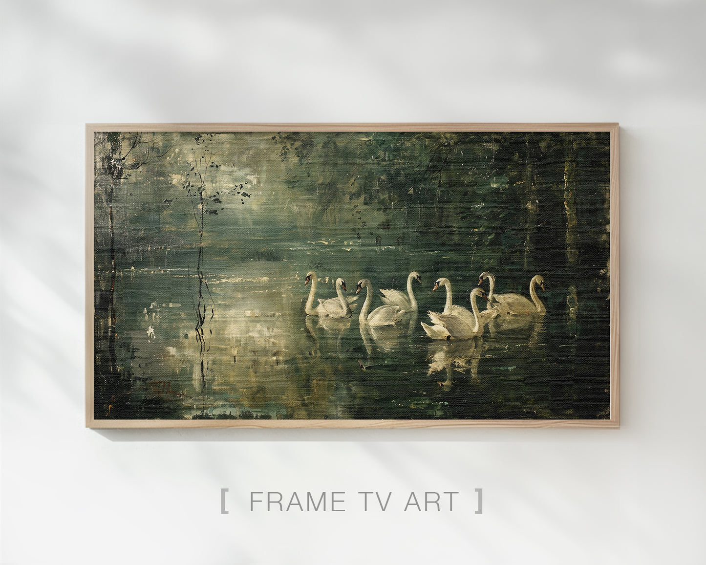 Vintage Swan digital Art in 4K Ultra HD, it's perfect for Samsung Frame TV and Smart TV. Also compatible with a 16:9 ratio for displays, computers, laptops, and iPad wallpapers.