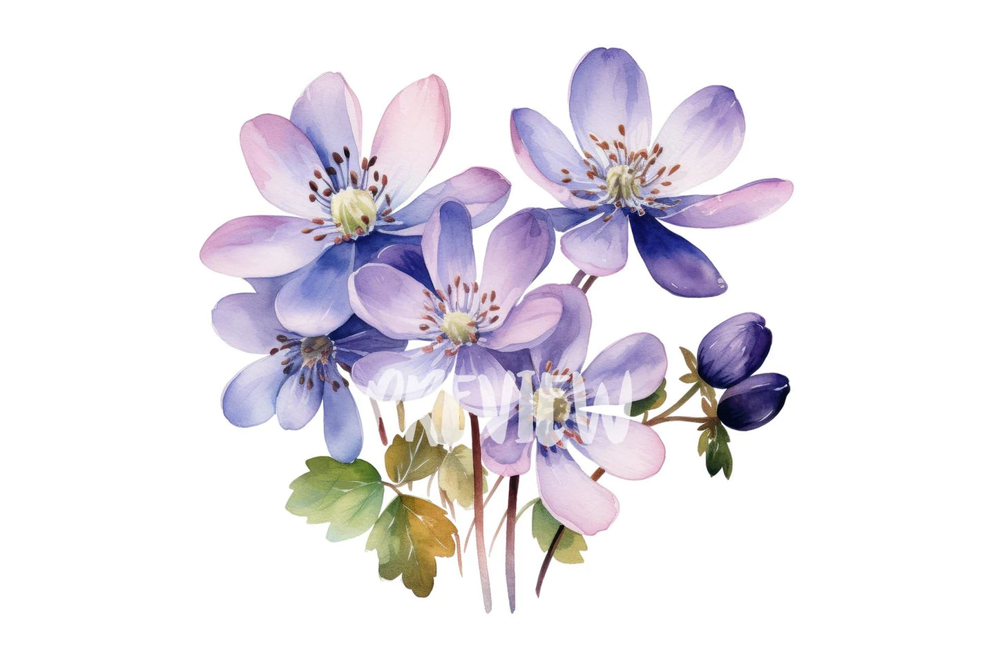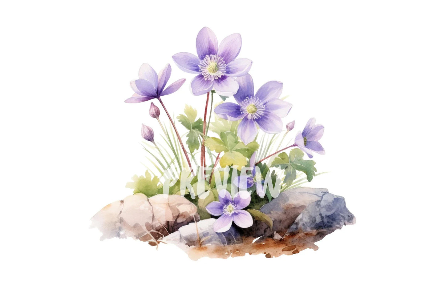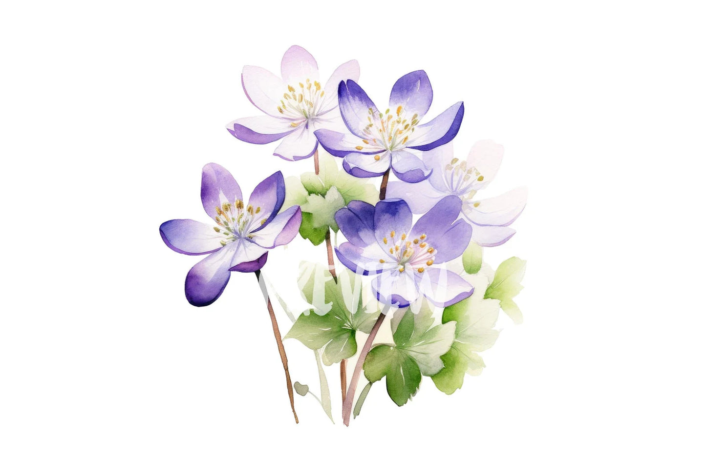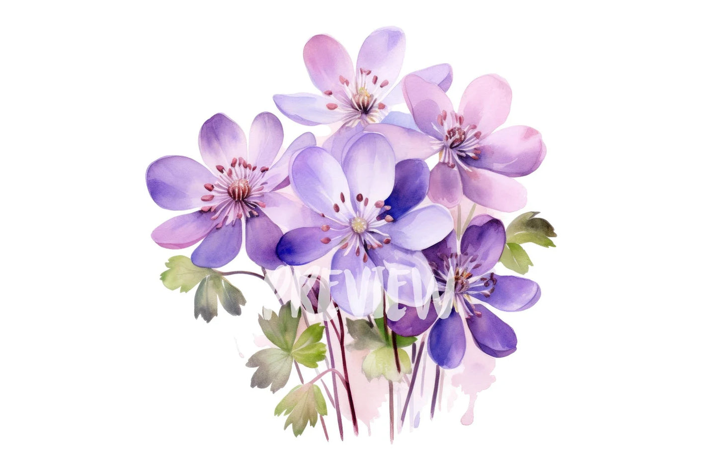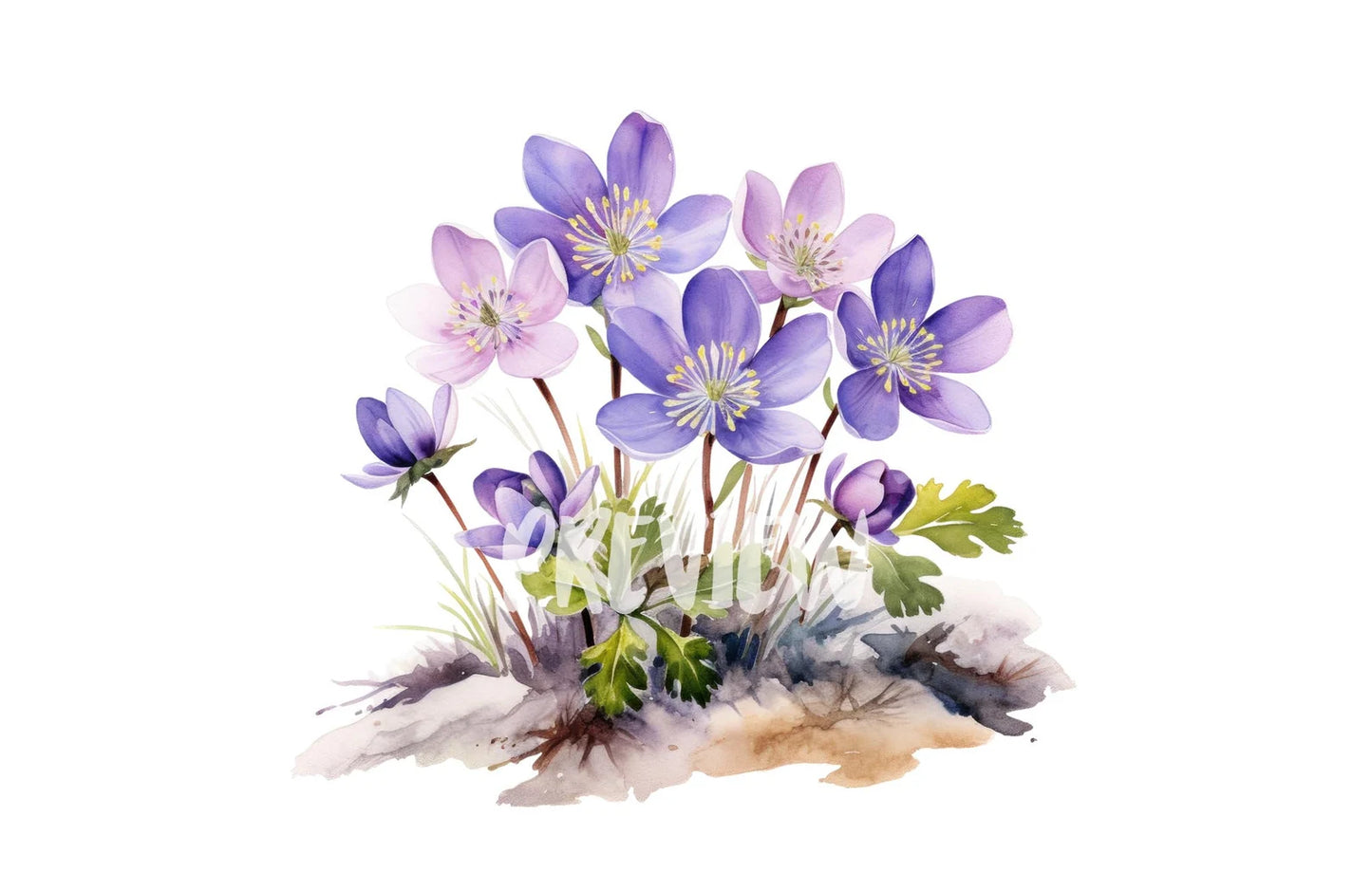 Watercolor Hepatica Clipart PNG