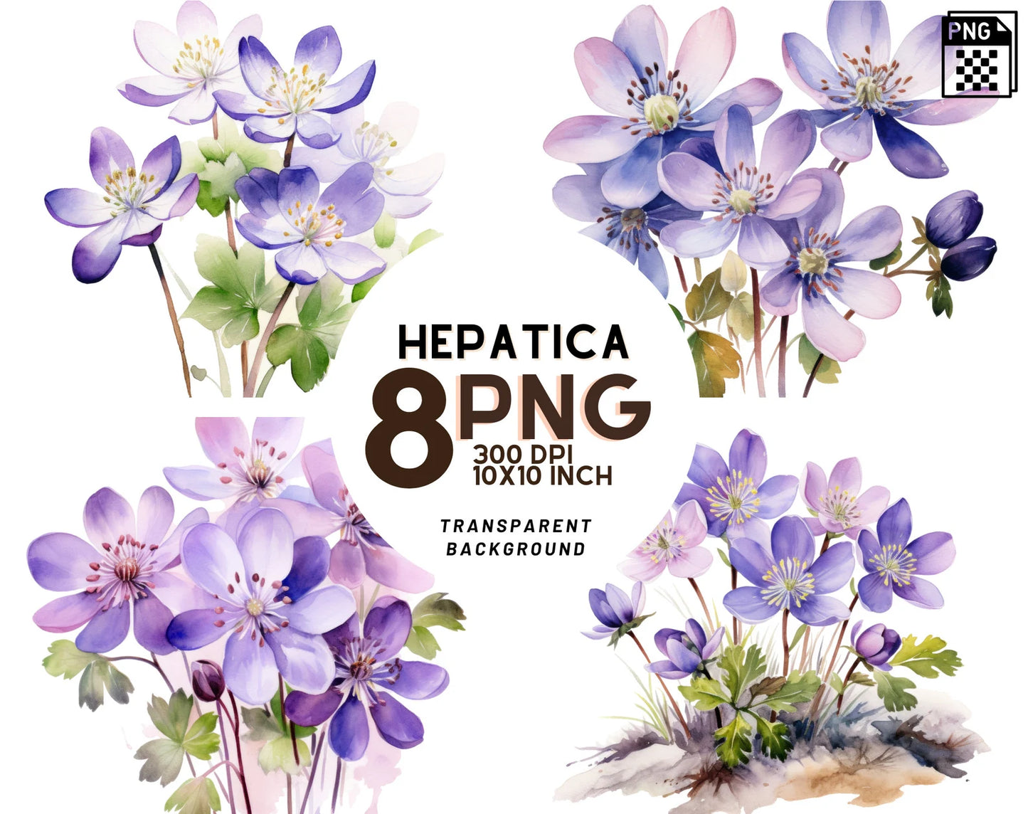 Hepatica flowers are beloved for their distinctive early spring blooms and vibrant colors, often associated with woodland gardens and natural landscapes. This clipart set is designed to honor the beauty and significance of Hepatica flowers, making it an ideal choice for projects that celebrate the wonders of nature, the joy of gardening, and the art of floral design.