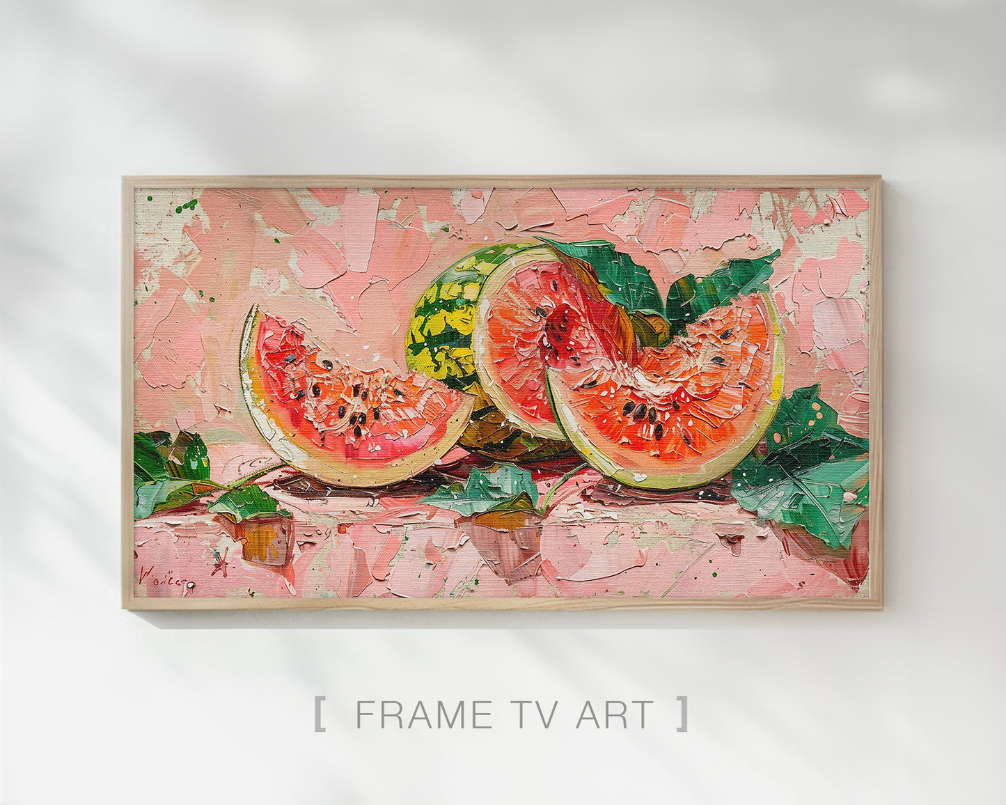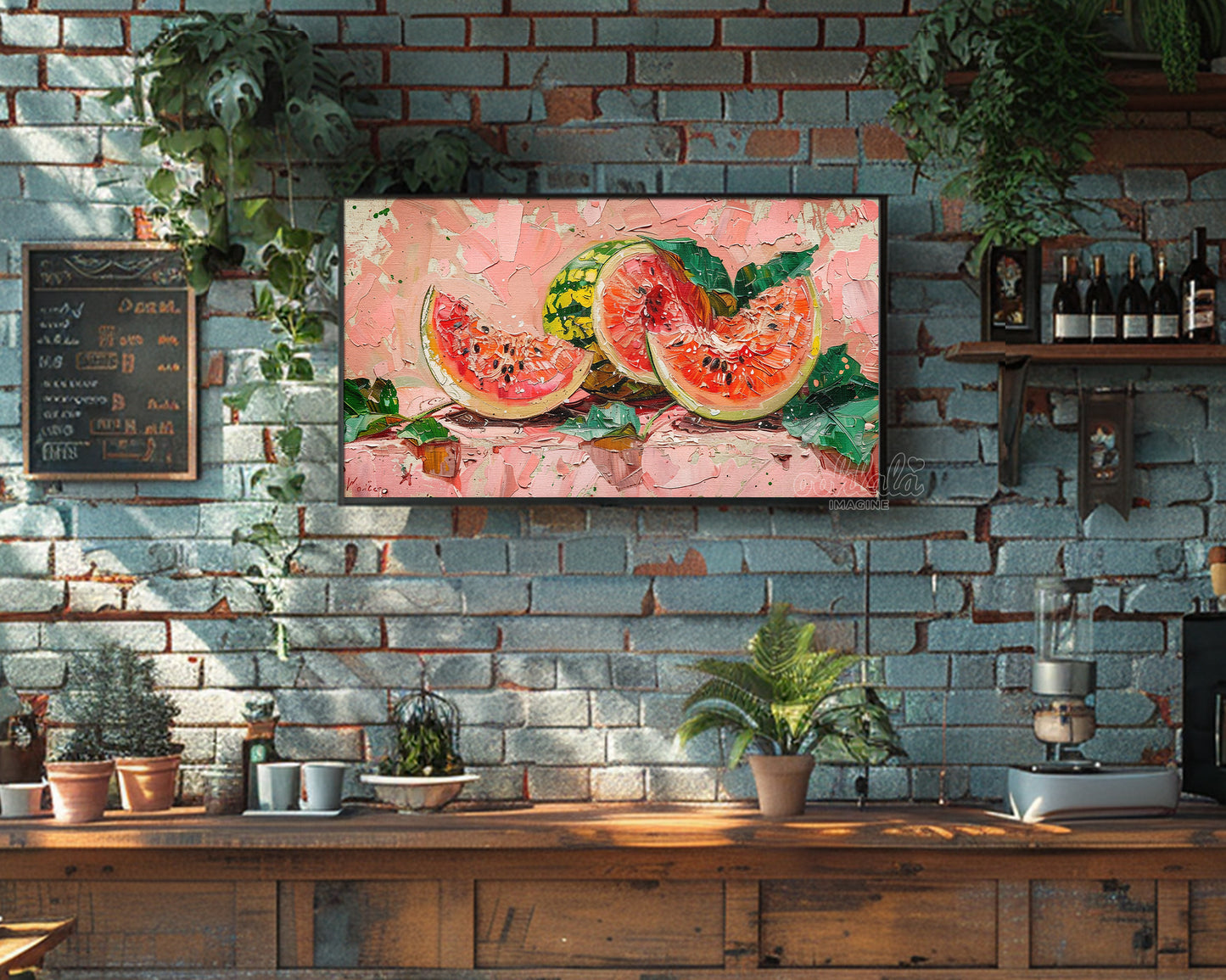 Watermelon Painting digital Art in 4K Ultra HD, it's perfect for Samsung Frame TV and Smart TV. Also compatible with a 16:9 ratio for desktop displays, laptops, and iPad wallpapers.