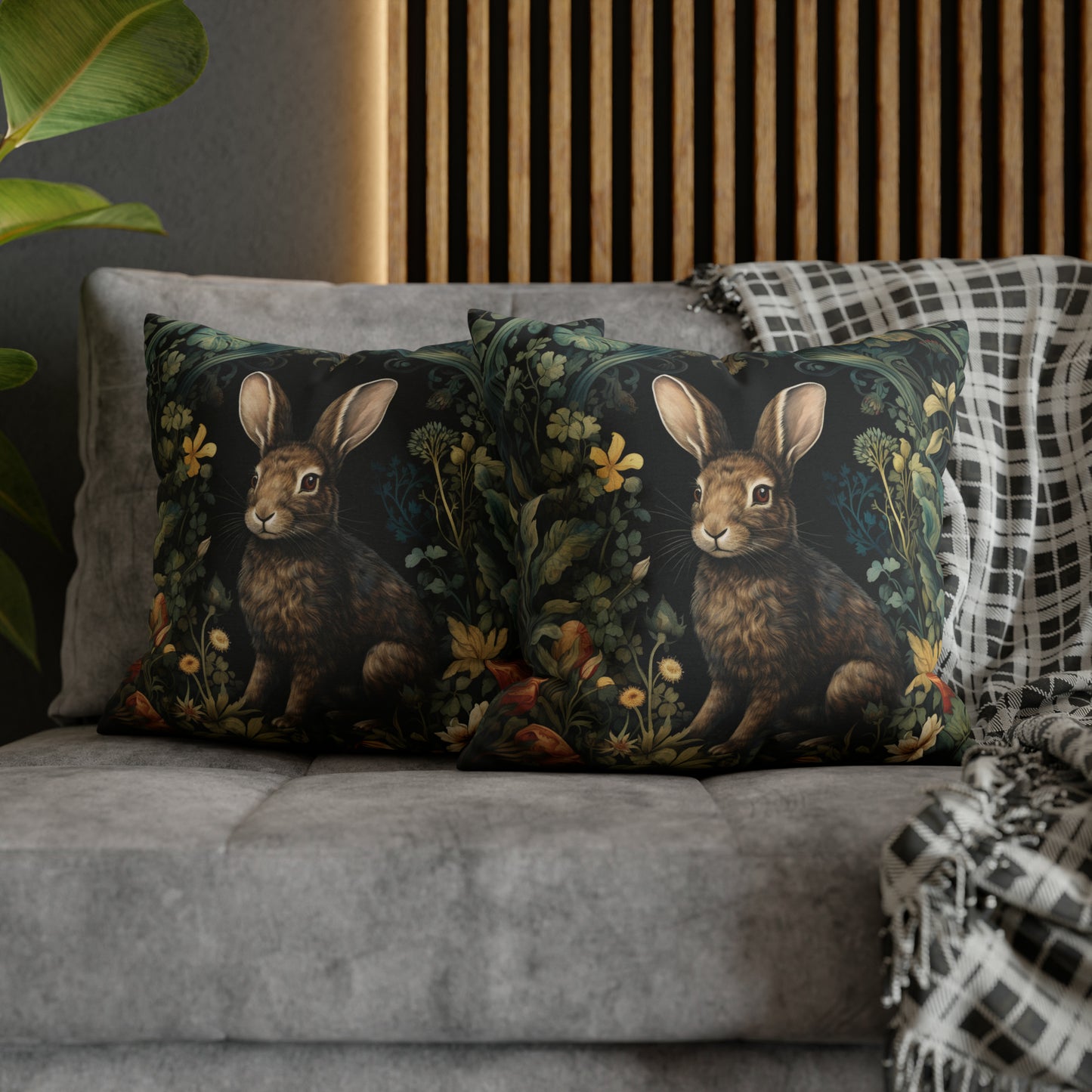 William Morris Inspired Rabbit amidst Floral Forest Pillow