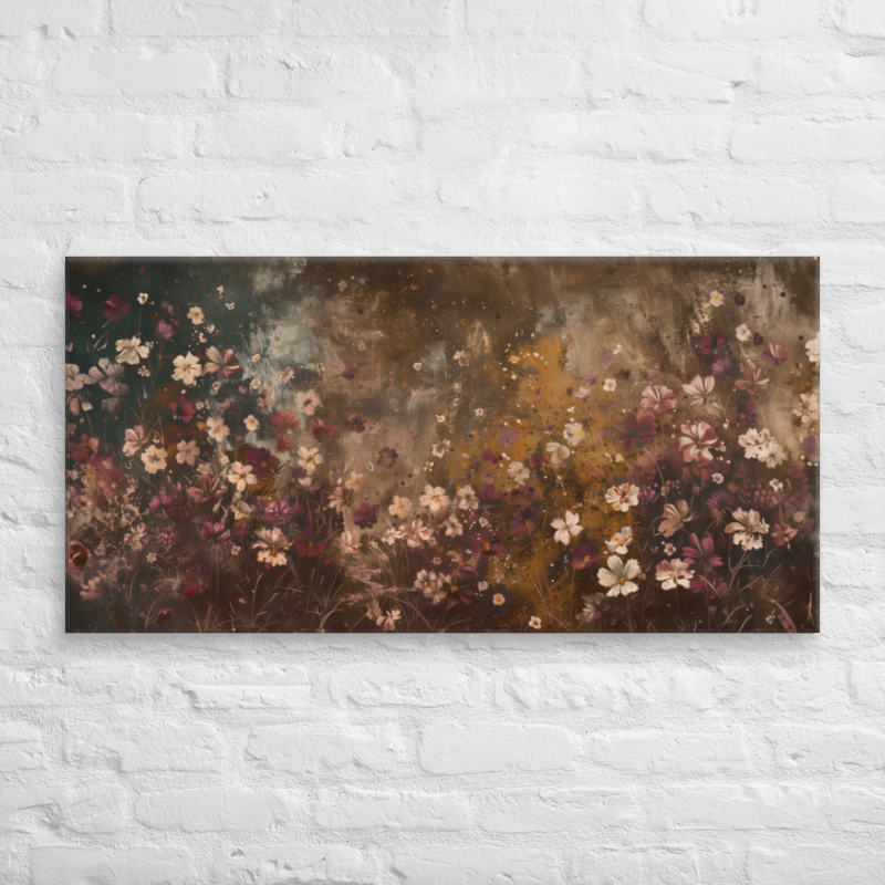 Neutral Rustic Flowers Painting – 2:1 Ratio Gallery Wrapped Canvas Wall Art, Ready to Hang