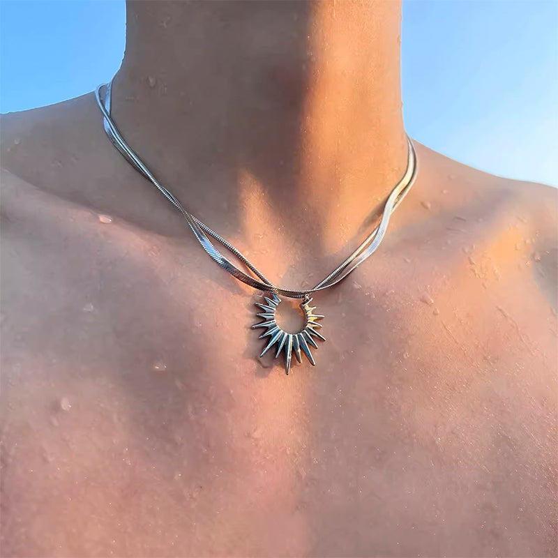 Sunburst Layered 2 in 1 Necklace, Instagram, Kpop, TikTok Street Style Necklace