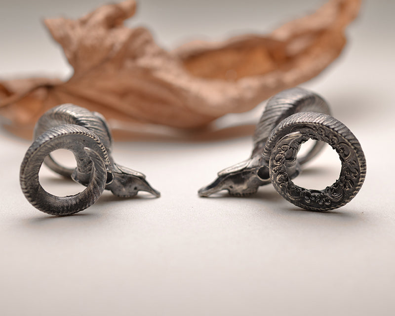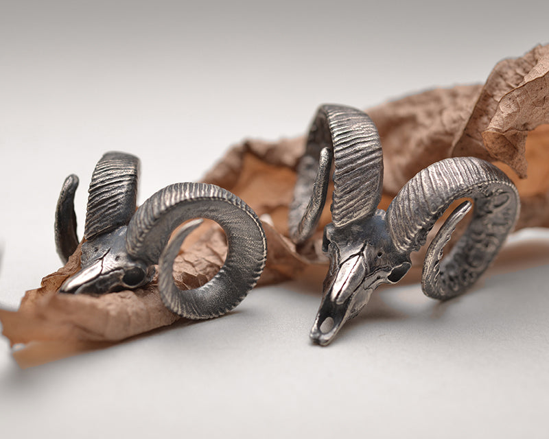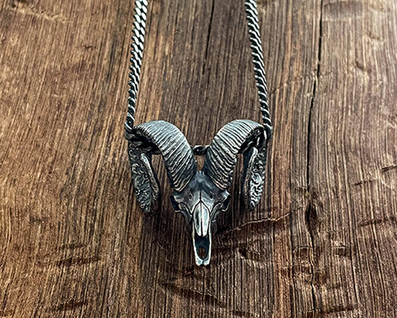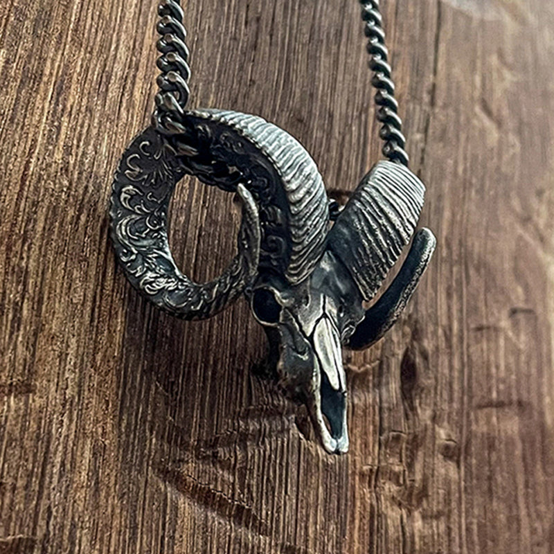 Silver Ram Head Pendant Sterling Silver Ram Skull Amulet Horn Pendant