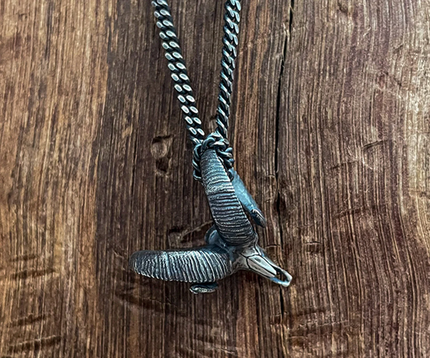 Our pendant captures this spirit in a rugged, hammered finish, evoking a rustic charm that resonates with its raw power. Wear this pendant as a reminder of your own inner strength and resilience, and let the spirit of the ram guide you on your journey to success.