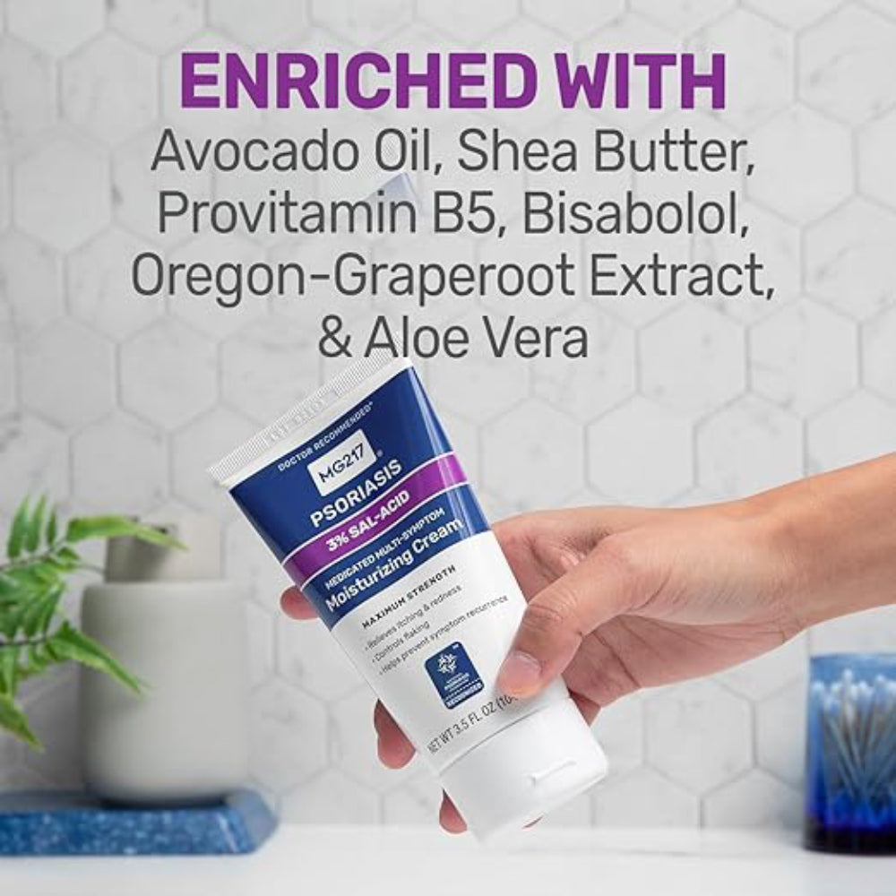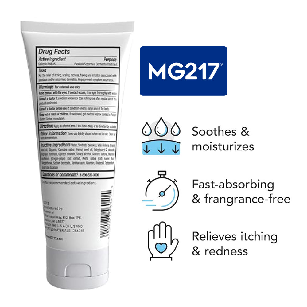 MG217 多效舒緩3%水楊酸乾癬脱屑保濕乳104 ml (3.5 oz) 可協助您脱屑緩解乾癬症狀。這款無香型產品蘊含3%水楊酸,專為解決乾癬引起的紅腫、搔癢和脫屑問題而設計。(限外用: 適合厚皮部位,避開薄皮部位,及皮膚龜裂或傷口處,如果有點刺刺的,請暫停使用,諮詢醫師。可先改用Coal Tar煤焦油軟膏或凡士林之類的改善)。