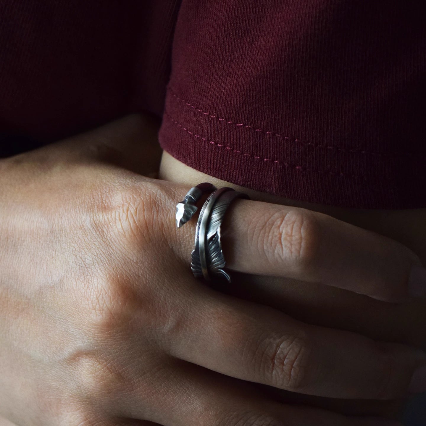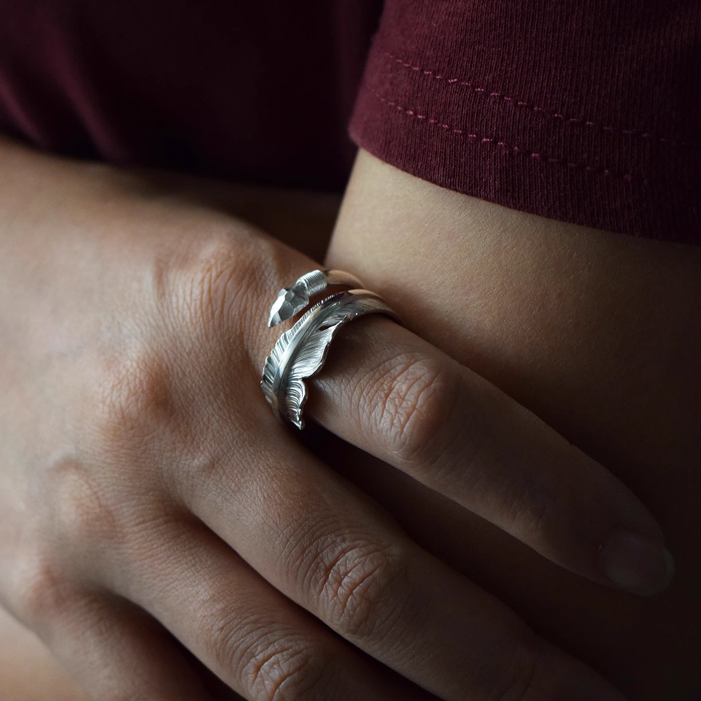 融入美洲原住民印第安文化的深厚底蘊,這款箭羽戒指,向兩種強大的象徵致敬:箭矢與紅尾鵟羽。精緻細膩的工藝展現箭矢的迅捷、方向與守護之力,象徵引領與堅韌。箭尾上點綴的紅尾鵟羽,更添一份神聖之美,在美洲原住民傳統中象徵與靈性世界的連結。